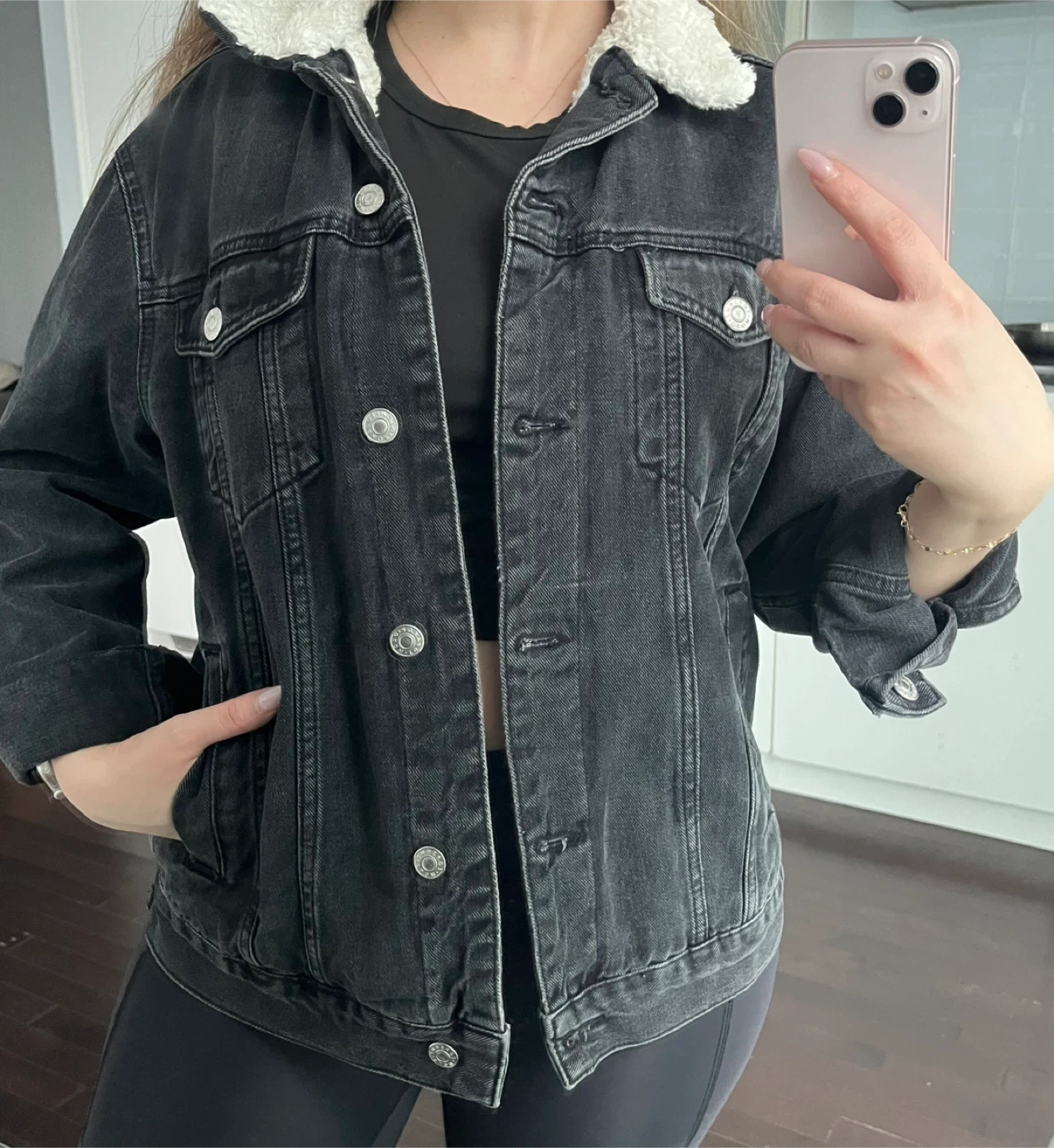 Buy & SellBlack Denim JacketBlack Denim Jacket$20A classic black denim jacket with a cozy sherpa lining. It features a button-up front and chest pockets.ConditionOkaySizeOne size WHERE TO MEETStarbucks harbourfrontView MapSELLERverifiedAsliHarbourfront761 review0 chats·0 favorites·29 viewsSEND CHAT TO SELLERHi Asli! I’m interested in your listing.Hi Asli! I’m interested in your listing.Get the Karrot app to chatSign In to chat