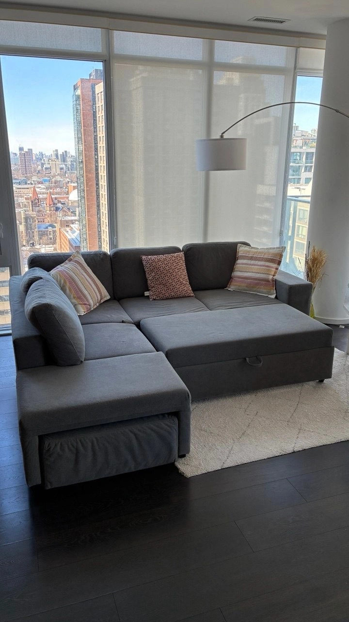 Comfy Grey Sofa Bed with Chaise – Great for Condos