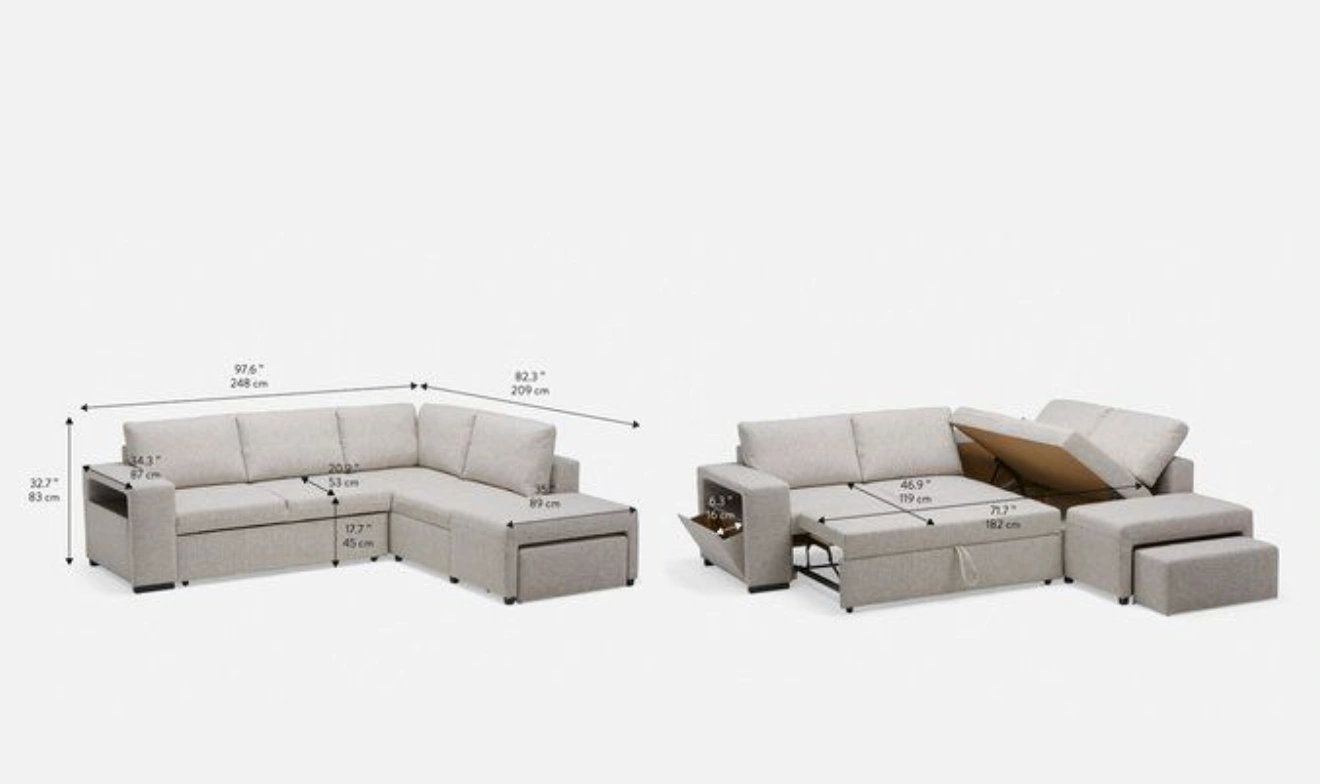 - DimensionsW: 97.6 in • D: 82.3 in • H: 32.7 in