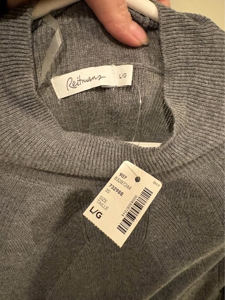 Reitmans NWT Gray Long Sleeve Top LG Stretchy