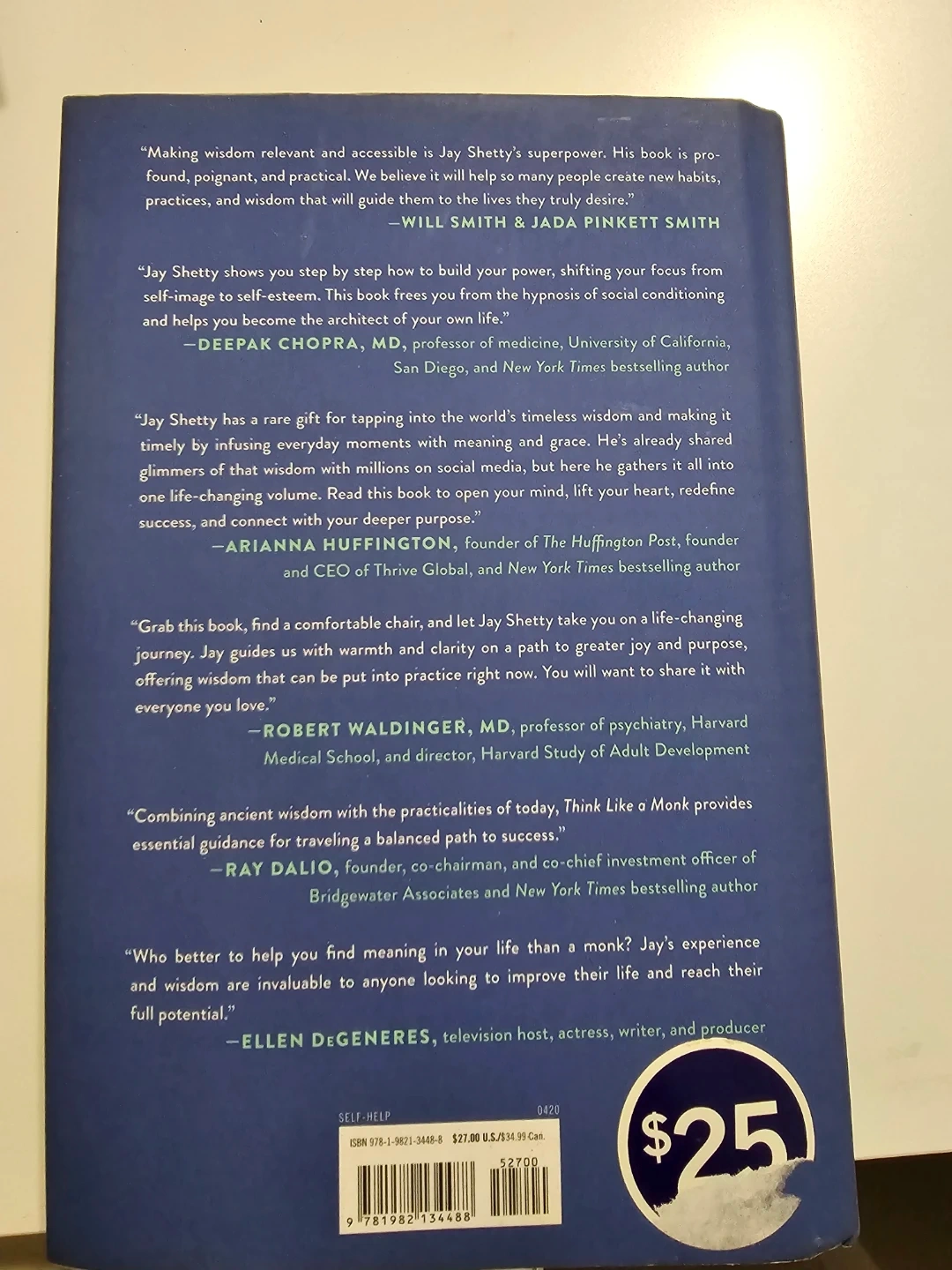 Selling "Think Like a Monk" by Jay Shetty! This self-help book aims to train your mind for peace and purpose every day. It was originally bought for $25 CAD. A great read to help you build your power and shift your focus!
