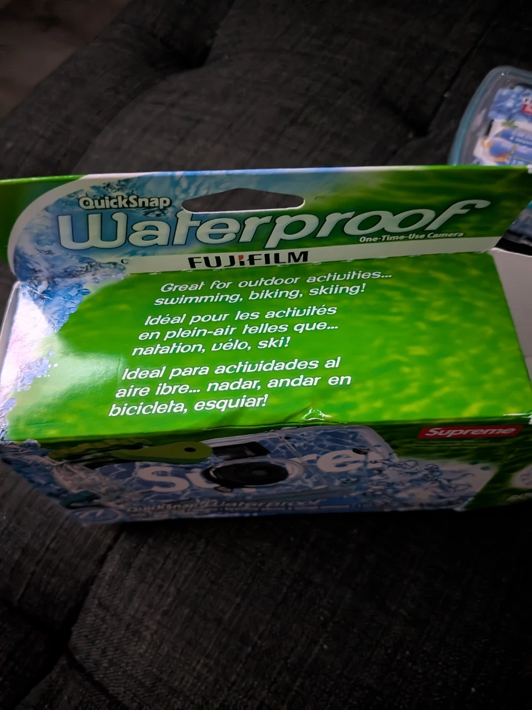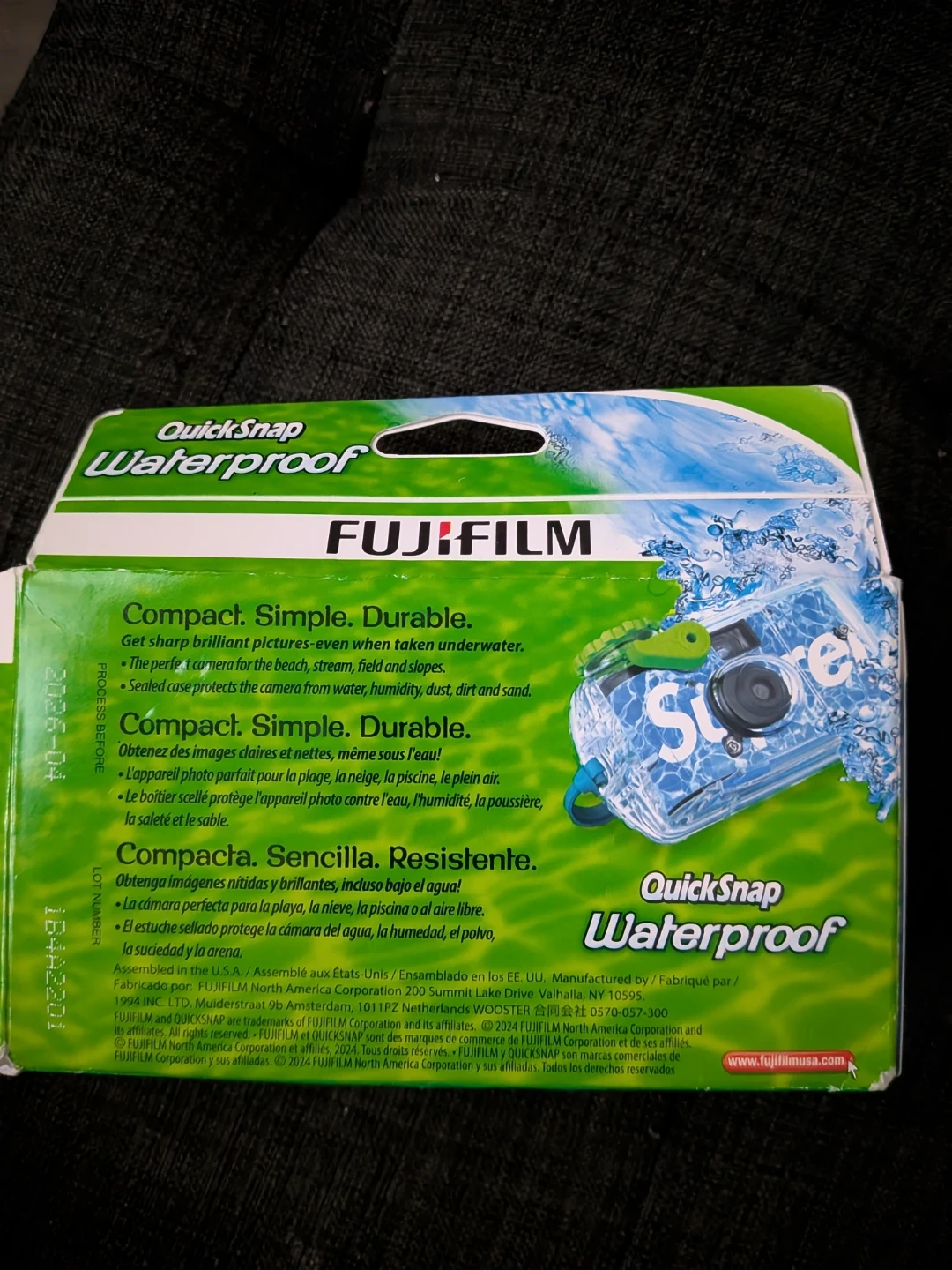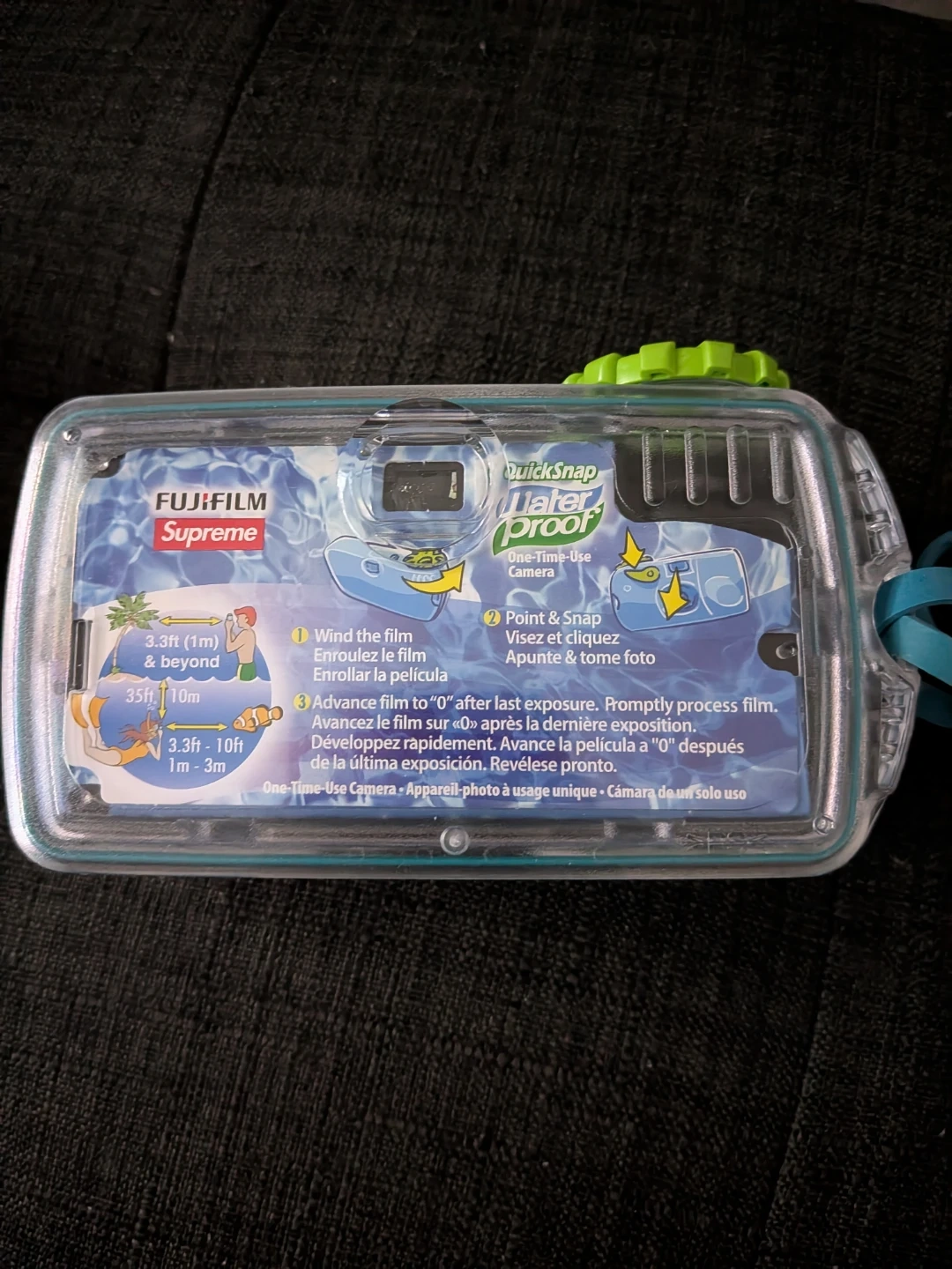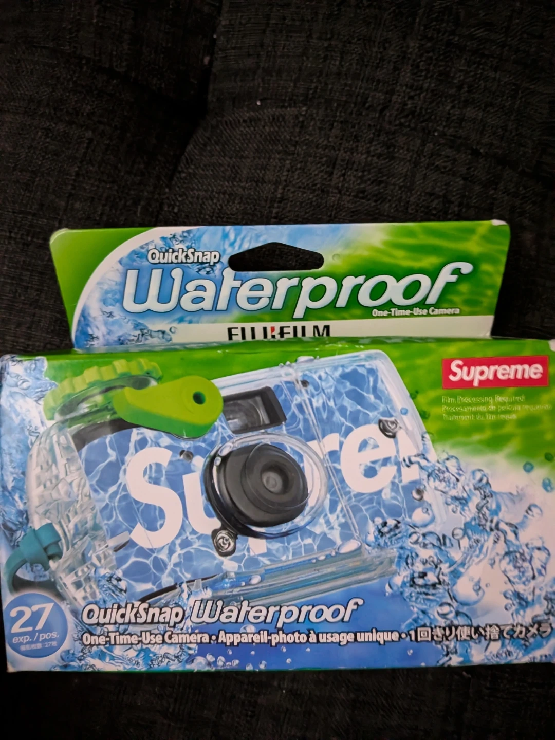 This is a Fujifilm QuickSnap Supreme one-time-use camera. It's waterproof and designed for use in wet conditions. Includes 27 exposures with 800 film.
