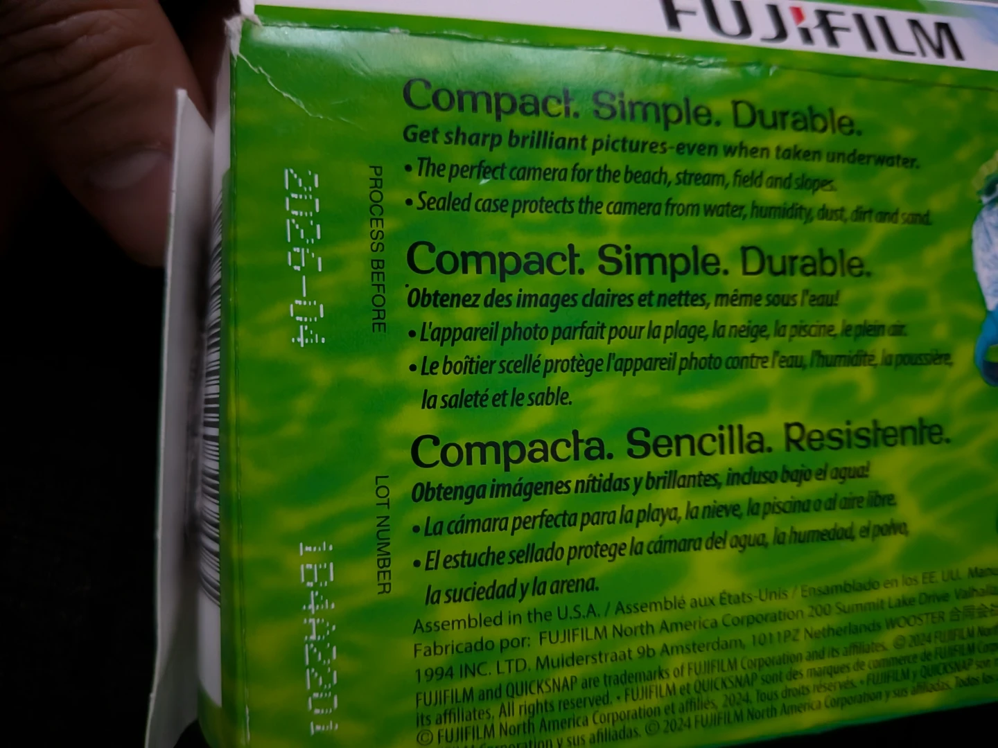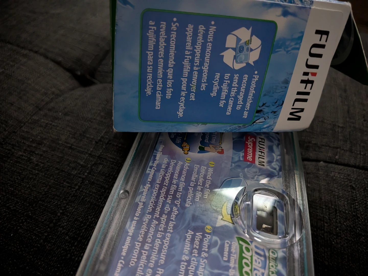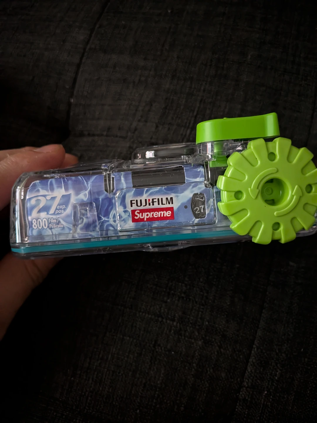 This is a Fujifilm QuickSnap Supreme one-time-use camera. It's waterproof and designed for use in wet conditions. Includes 27 exposures with 800 film.