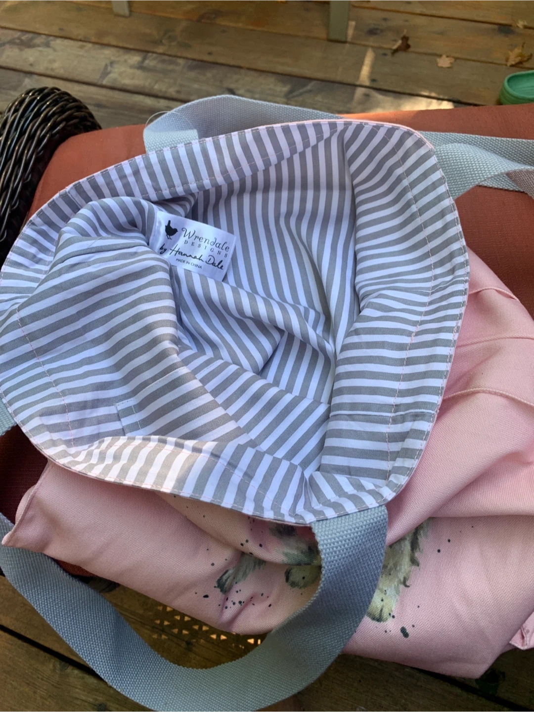 Hey cat lovers….Check out this adorable BNWT Wrendale Designs tote bag! 🐈It features a sweet watercolour illustration of two cats by Hannah Dale designed in England. The bag is pink on the outside and has a grey and white striped lining. The material is a sturdy canvas and the lining is 100% cotton. Perfect for carrying your everyday essentials, like books, shopping, gym clothes or for thrifting new treasures!