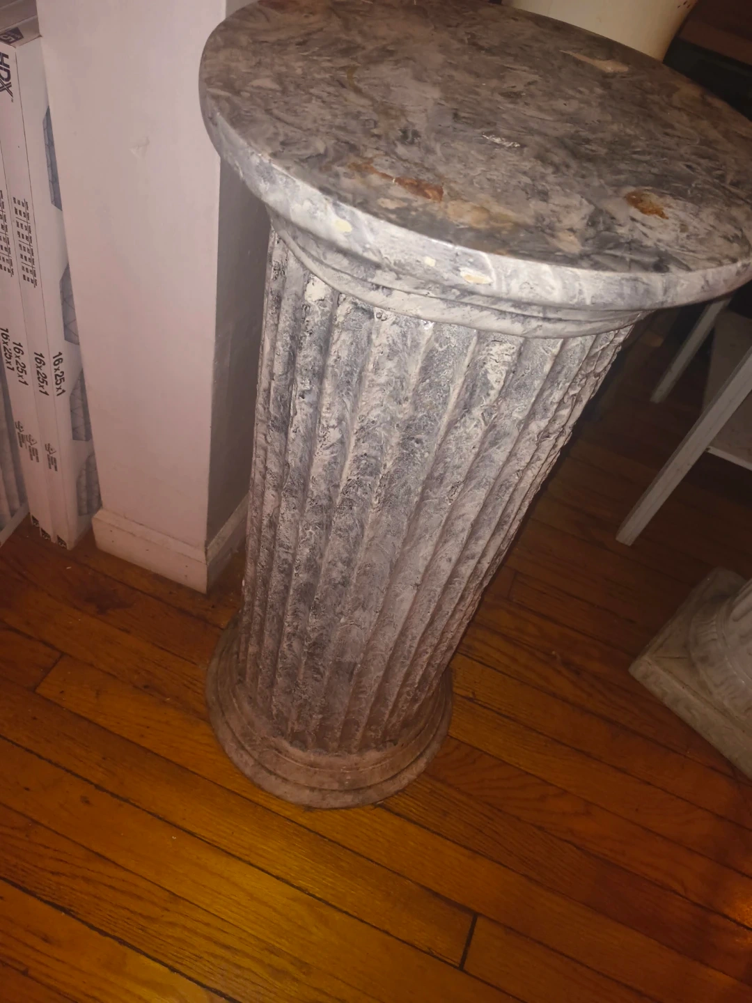 This decorative pedestal stand has a classic column design. It's perfect for displaying plants or sculptures. The material appears to be a composite or resin with a faux marble finish.