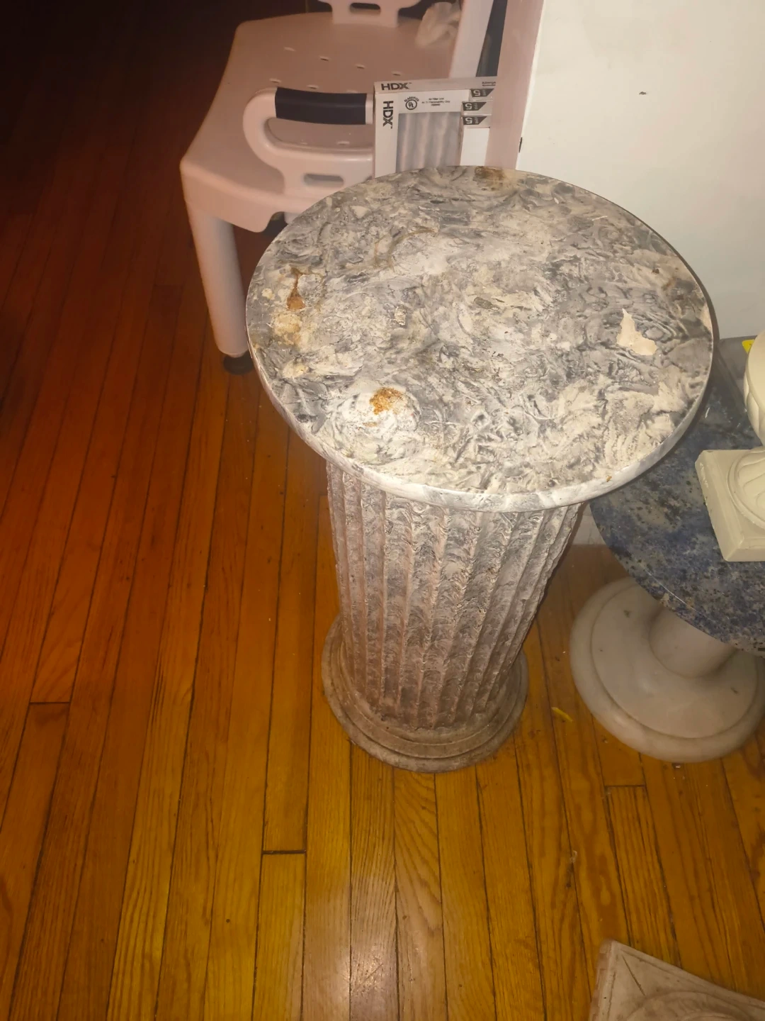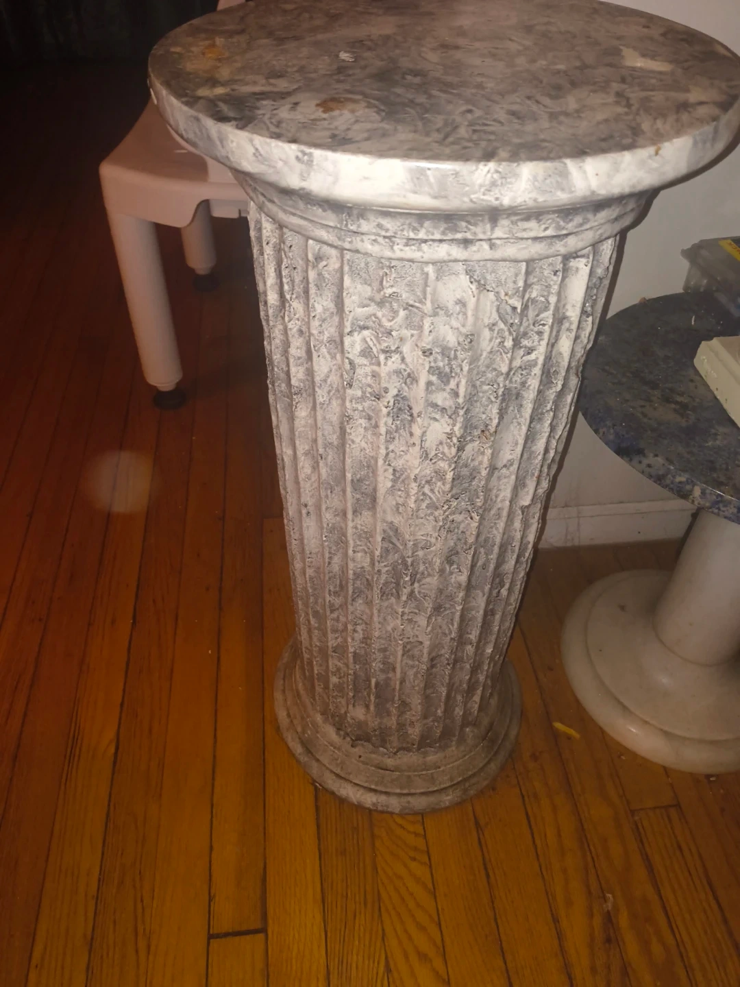 This decorative pedestal stand has a classic column design. It's perfect for displaying plants or sculptures. The material appears to be a composite or resin with a faux marble finish.