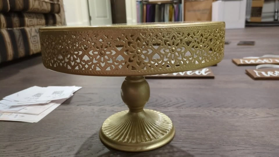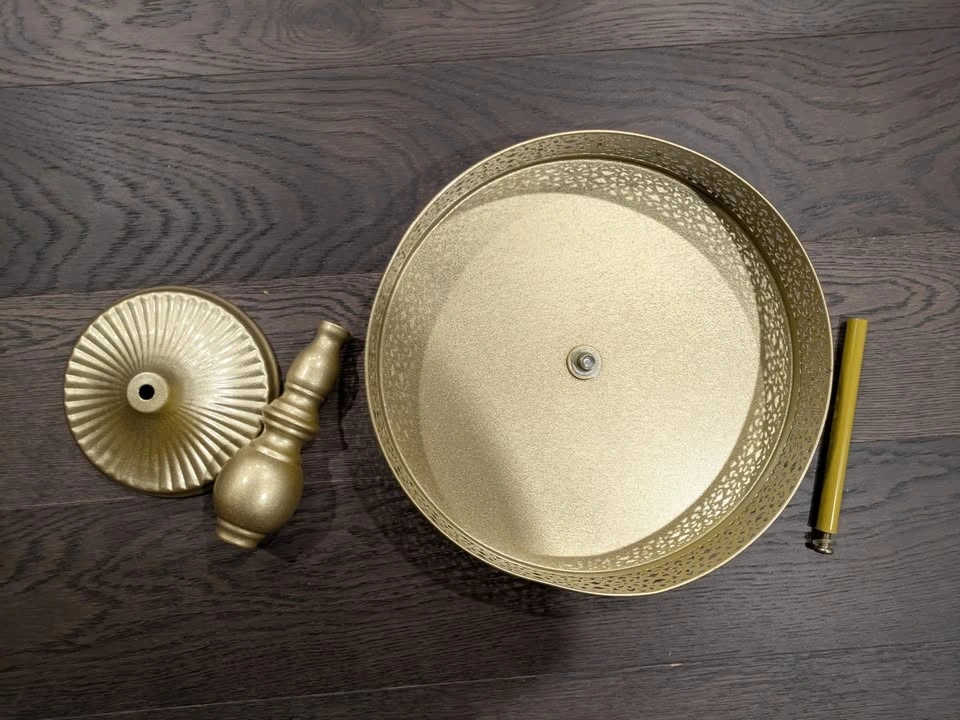 Metal with gold paint job. Sturdy and detachable/collapsible. Pickup at Champlain Mall. Can do pickup in Surrey, but will require a few days notice.