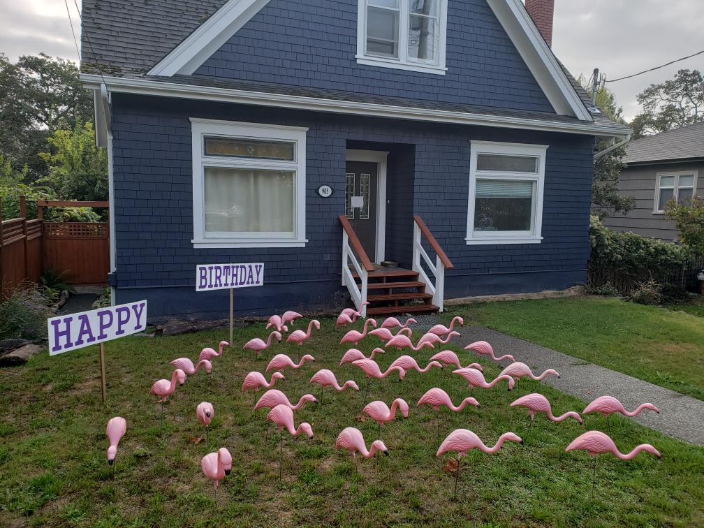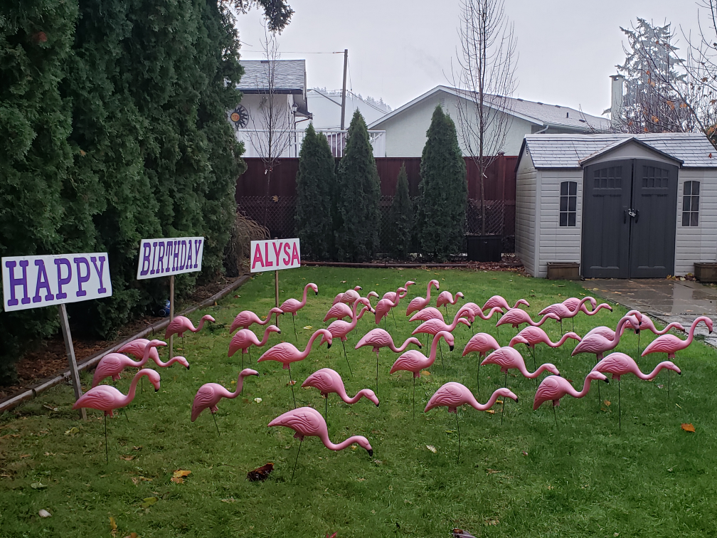 The 3 days rental is $79, pick up day before the big event day and return back the day after the big celebrating day. The rental package comes with 35-40 pink flamingos and 2 large HAPPY BIRTHDAY signs (without name) It's a unique and fun way of creating the element of surprise and adding to the enjoyment of your party which will definitely get lots of attention from that love one, as well as your neighbors.