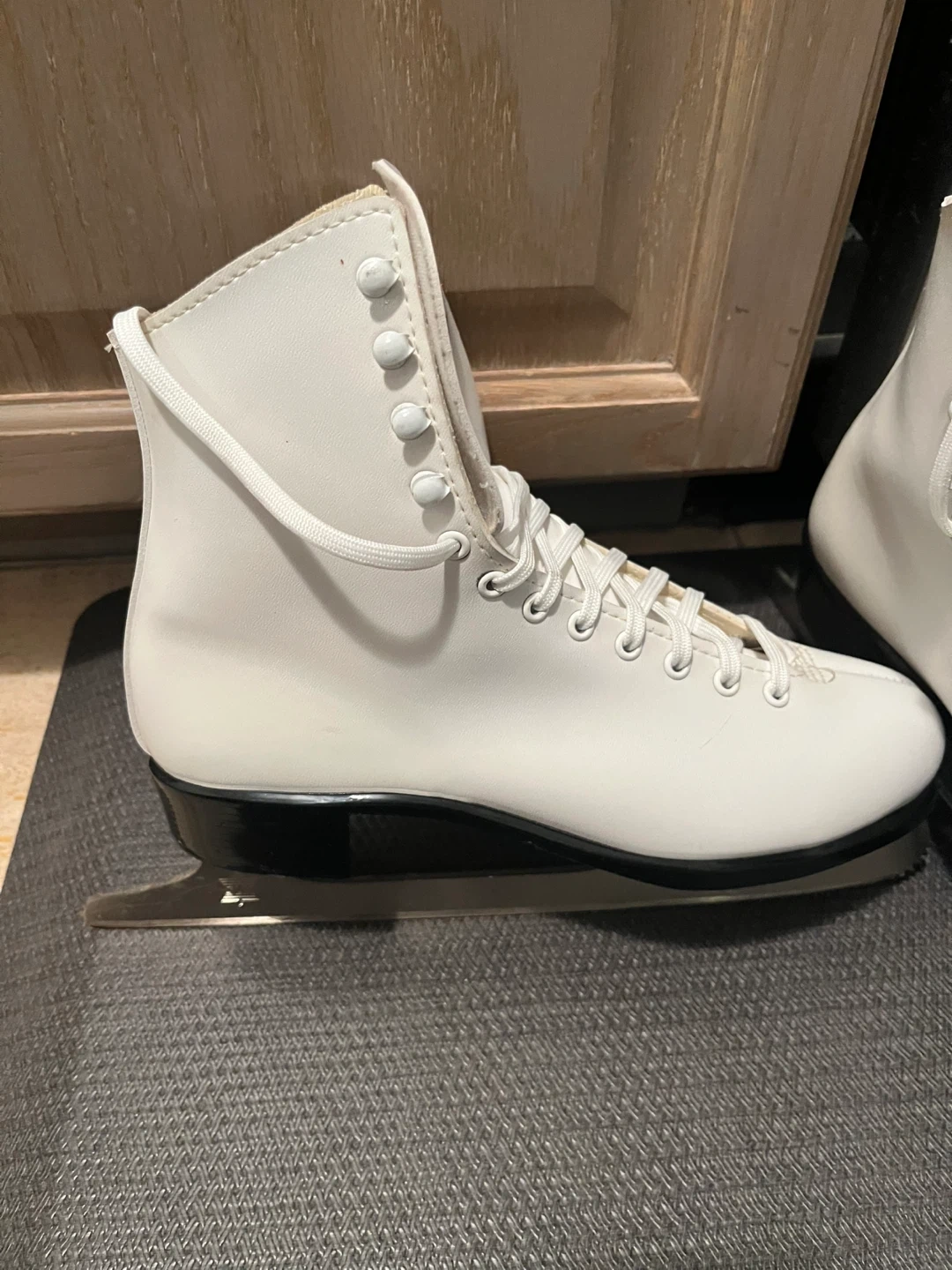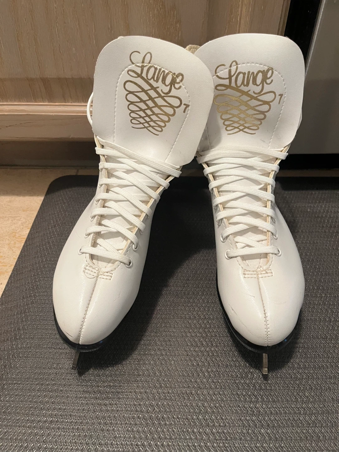 Selling a pair of white Lange figure skates in a size 7. Great for recreational skating or learning new skills at the rink. Embrace the season!