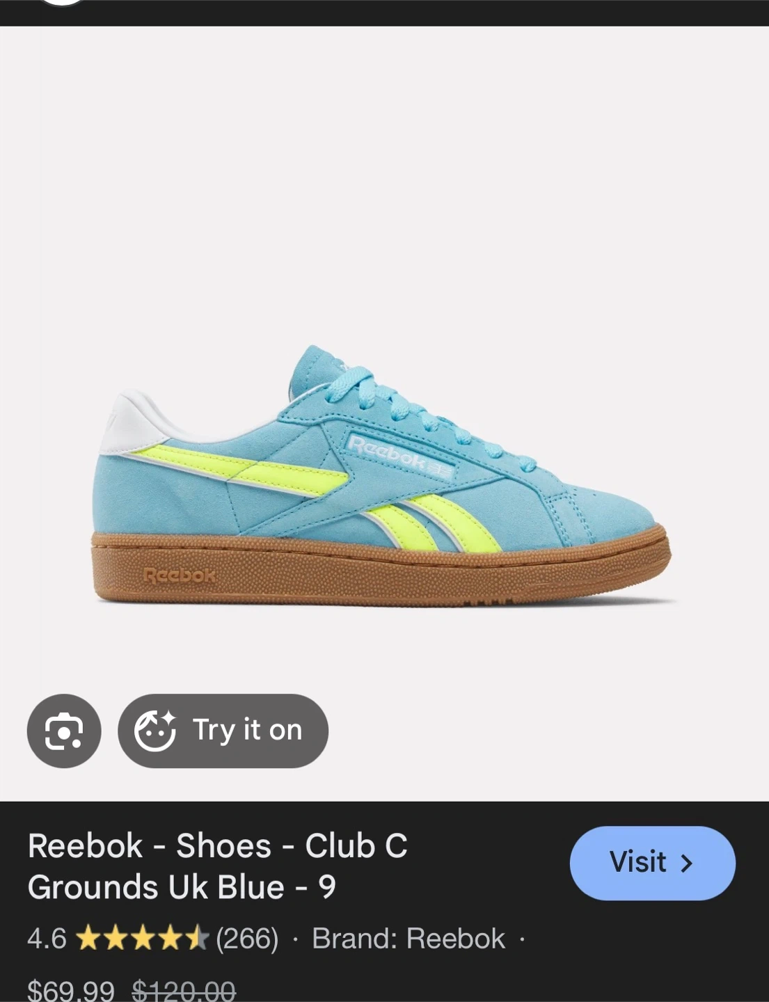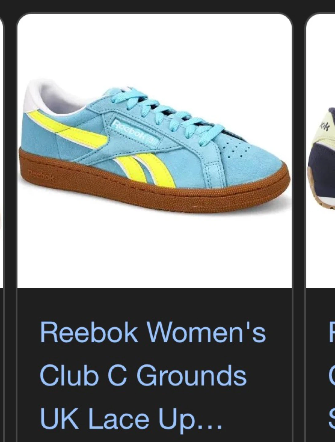These are Reebok Club C Grounds women's shoes in a blue and yellow colourway. They feature a lace-up closure and a durable gum sole. Size is available, sold in 2 days
