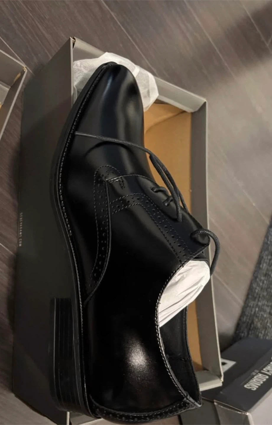 Brand new Stacy Adams Ardell Plain Toe Oxford dress shoes in black. Size 10 1/2 W. Comes with original box and dust bag. These are classic Oxfords perfect for formal occasions.