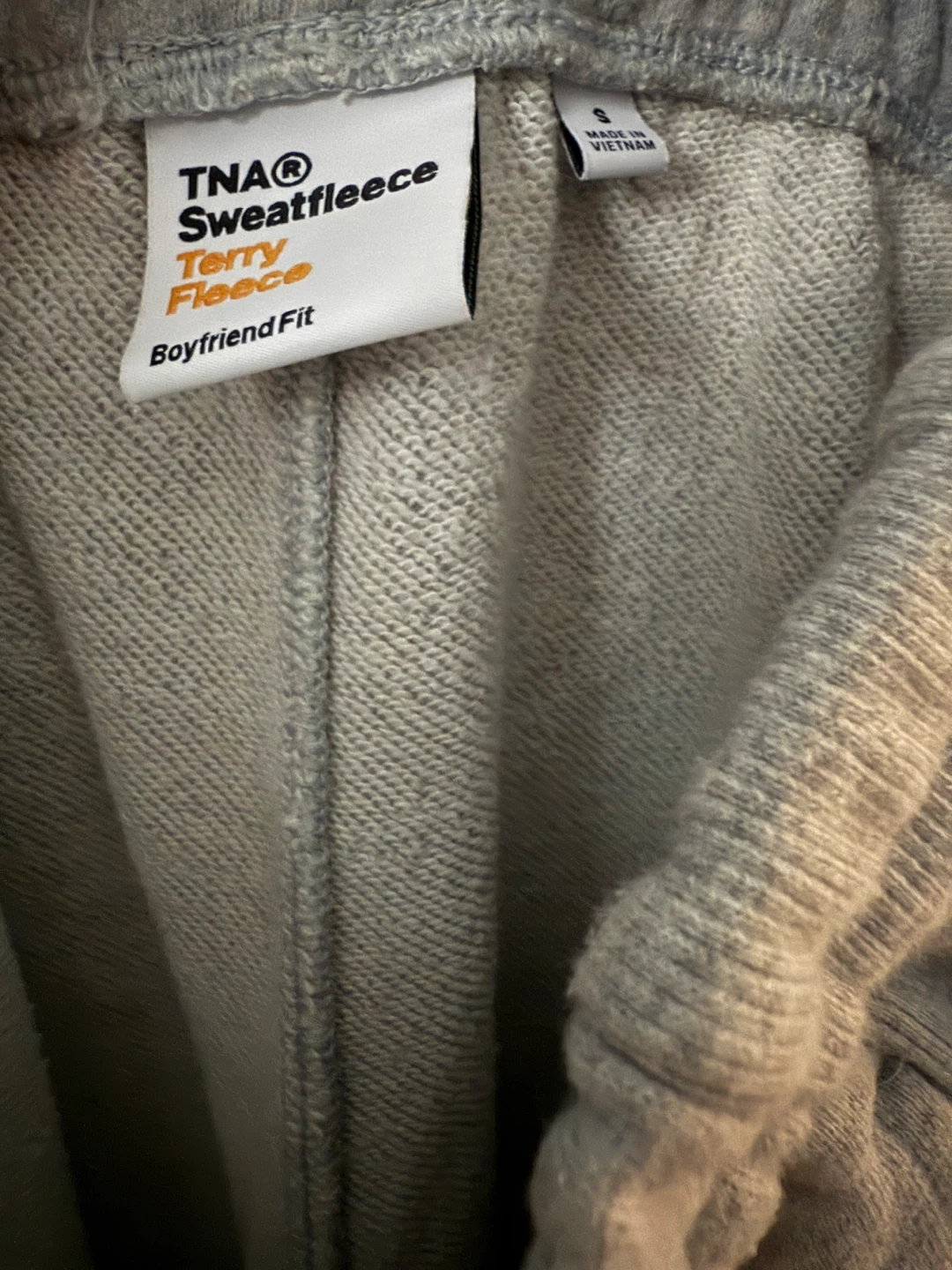 Selling a pair of TNA Sweatfleece Terry Boyfriend Fit pants in size small! They're a comfy and stylish addition to any wardrobe. The material is soft and cozy, perfect for lounging or running errands. They are grey in colour. I just have too many sweats. There are barely worn.