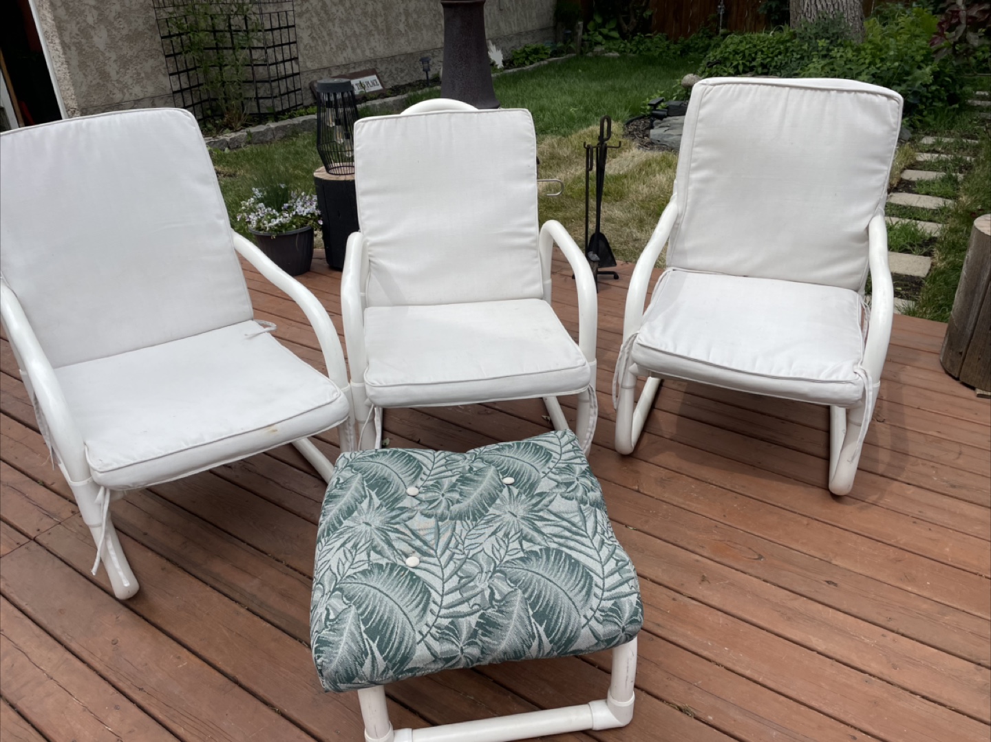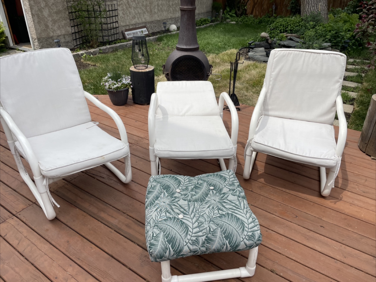1 / 31 / 3Buy & SellWhite Outdoor Chairs with OttomanWhite Outdoor Chairs with Ottoman$125PVC furniture very comfortable cushions included 1 reclining chair 2 armchairs PICKUP ST VITAL You can unwind and enjoy some sunshine in these chairs.ConditionLike newWHERE TO MEETCheck LocationView MapSELLERverifiedKimElm Park973 reviews0 chats·0 favorites·32 viewsSEND CHAT TO SELLERHi Kim! I’m interested in your listing.Hi Kim! I’m interested in your listing.Get the Karrot app to chatSign In to chat