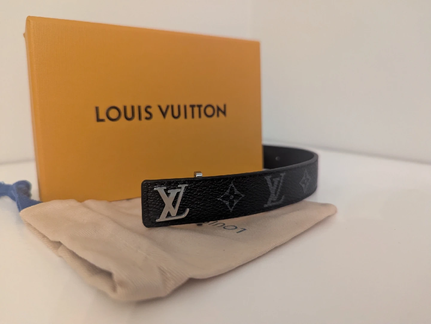 Selling a Louis Vuitton bracelet in black. It comes with the original box and dust bag. Great condition! never used hit me up for more information.