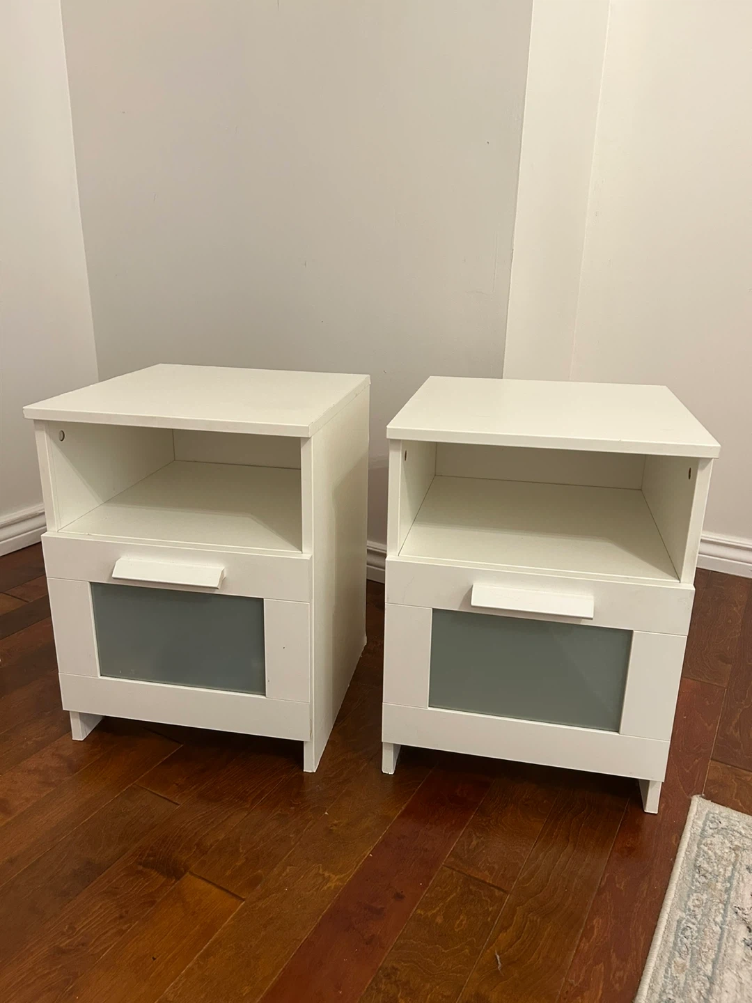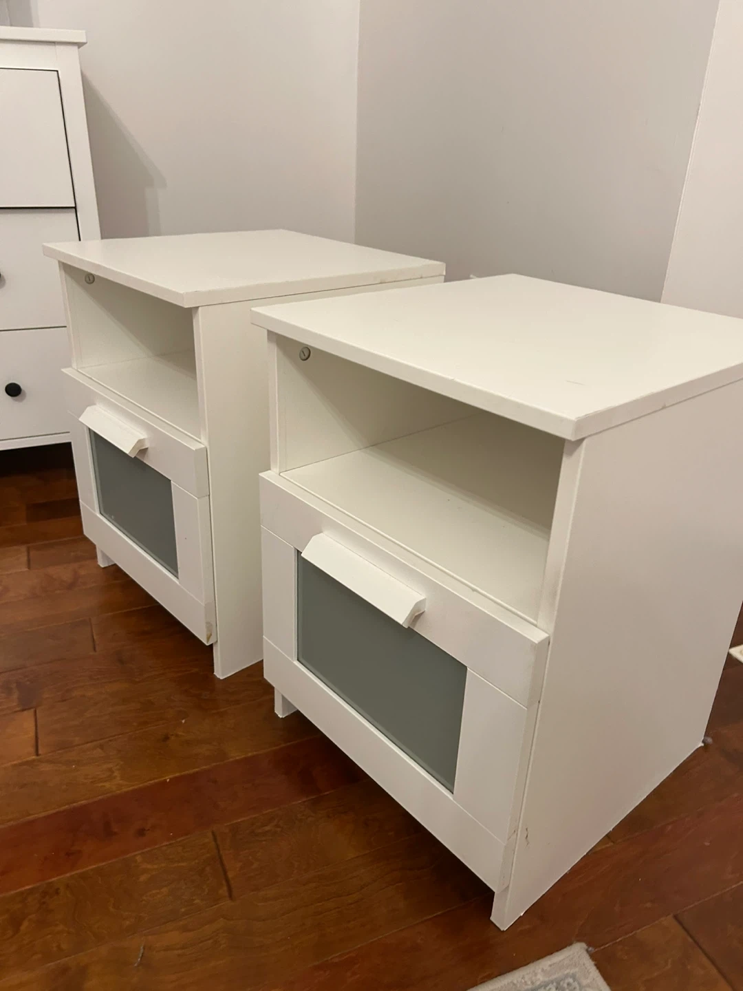 Buy & SellWhite Nightstands with Drawer (Set of 2)White Nightstands with Drawer (Set of 2)$69Two matching white nightstands. Each features an open shelf and a drawer with a frosted glass panel. Great for storing bedside essentials!ConditionOkayWHERE TO MEETCheck LocationView MapSELLERverifiedTanyaSouth Windsor762 reviews0 chats·0 favorites·9 viewsSEND CHAT TO SELLERHi Tanya! I’m interested in your listing.Hi Tanya! I’m interested in your listing.Get the Karrot app to chatSign In to chat