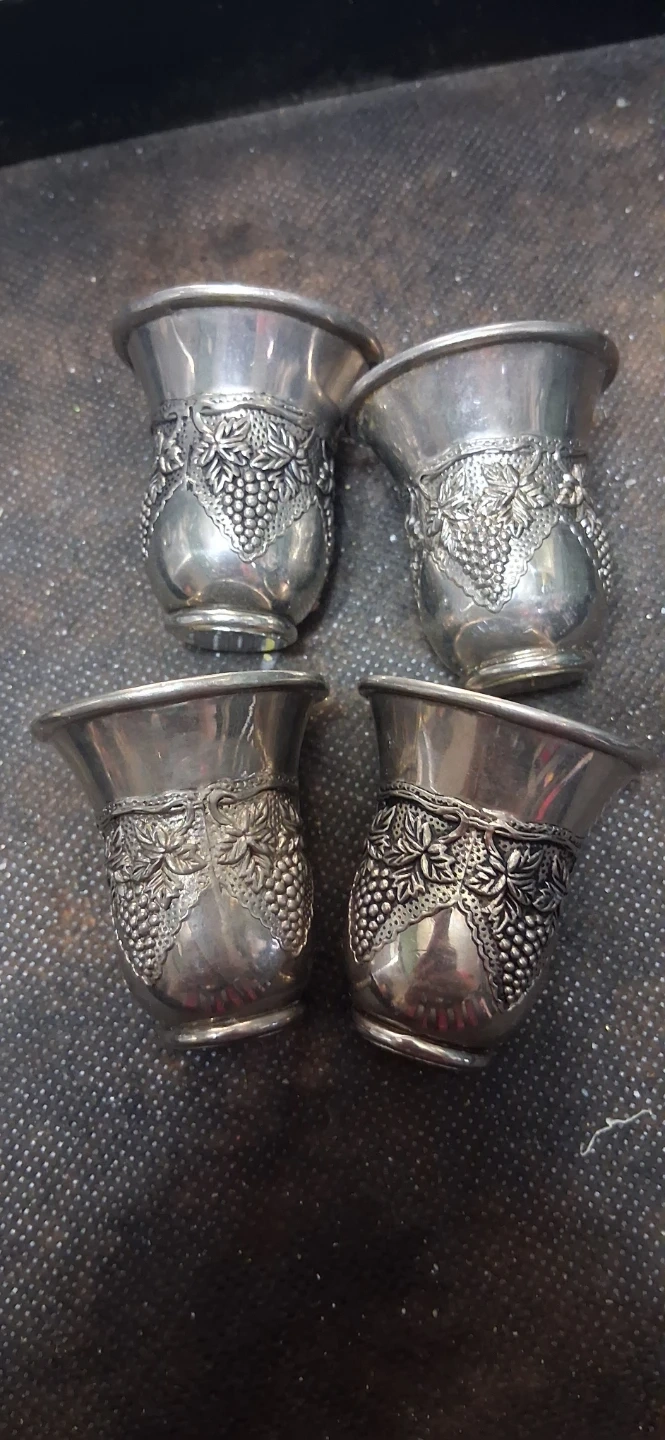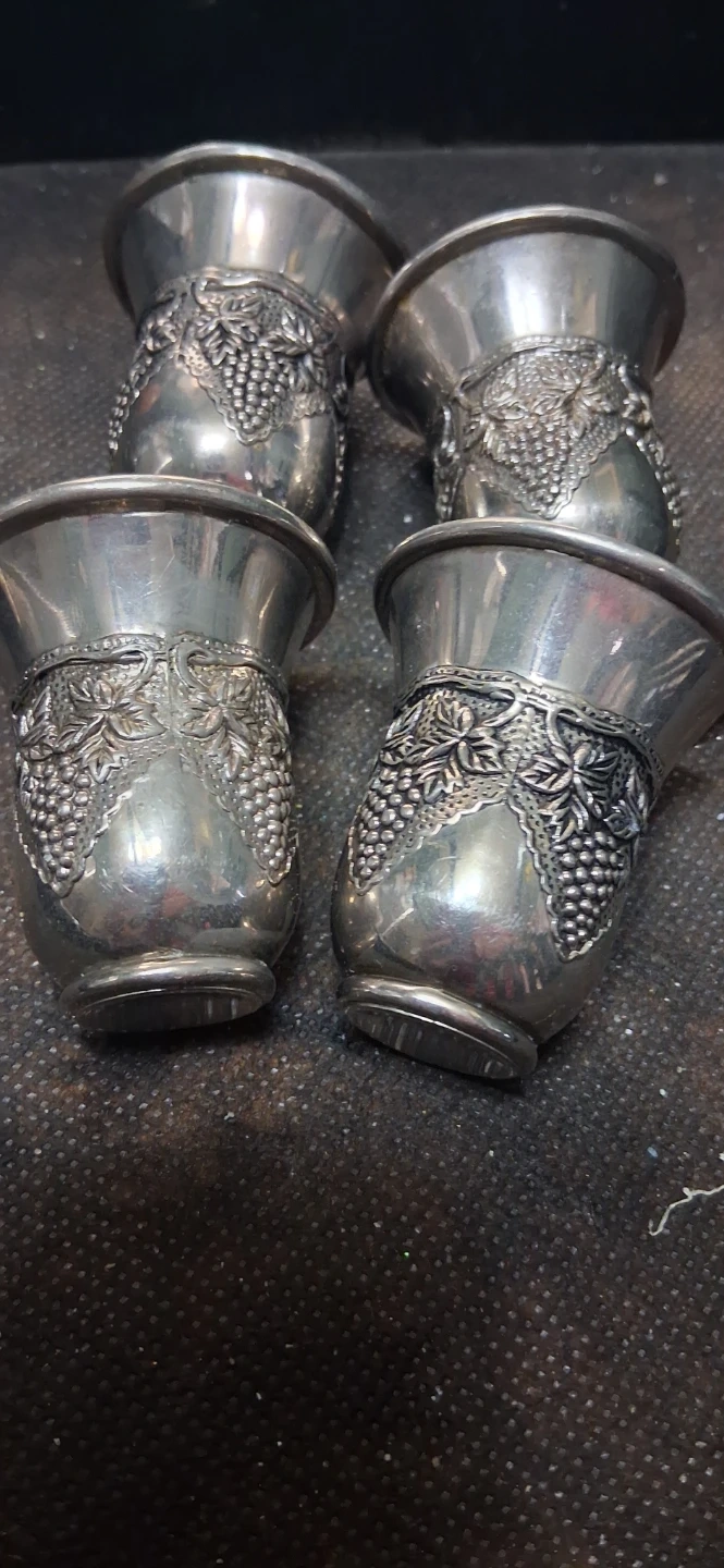 Set of 4 Vintage Silver Tone Metal Cups with Grapevine Design