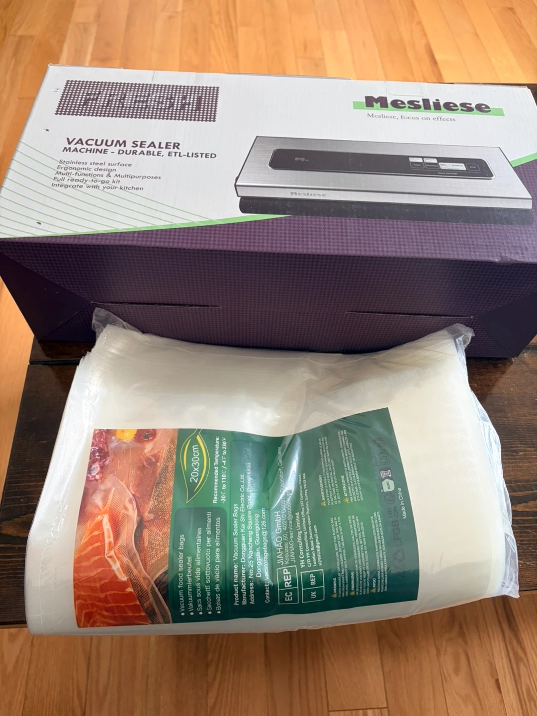 This Mesliese vacuum sealer machine is designed for efficient food preservation. It includes a roll of vacuum sealer bags for immediate use. Keep your food fresh longer with this essential kitchen appliance!