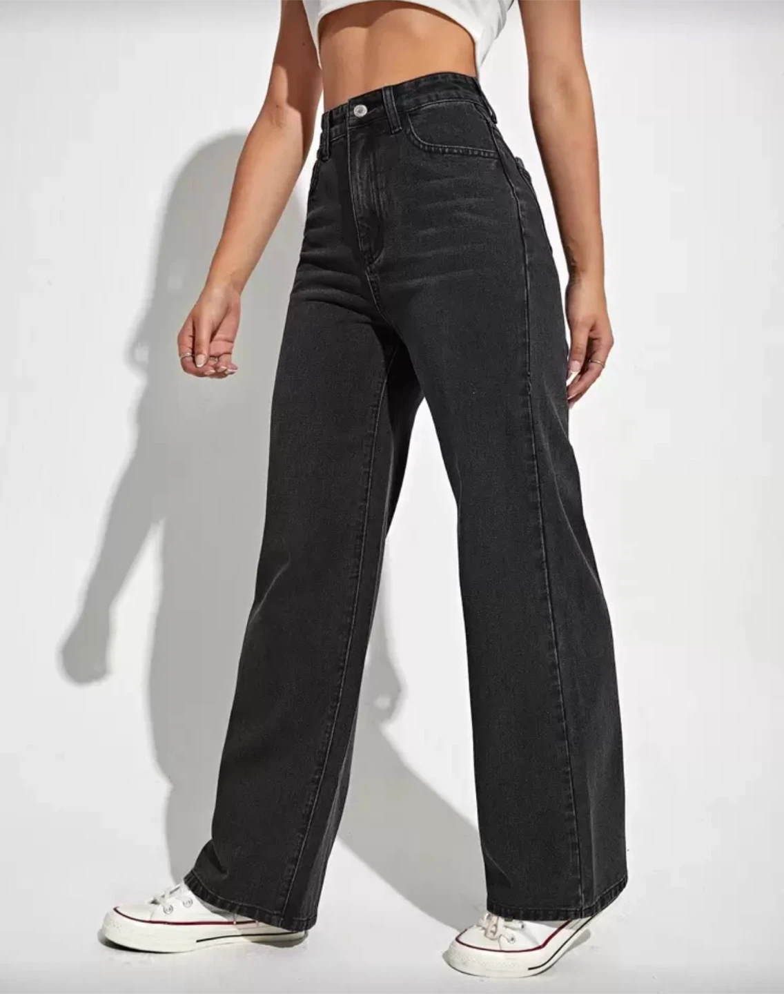 Black wide leg jeans! They are New! Perfect for a casual or dressed-up look, these jeans offer both comfort and style.