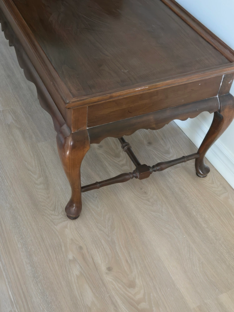 Rectangular coffee table. Dark brown wood finish. Elegant cabriole legs. Simple design. Great addition to any living room.moving sale