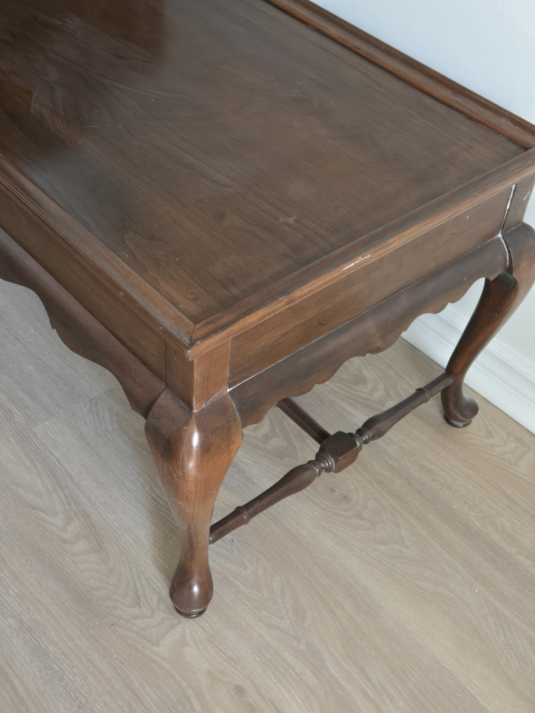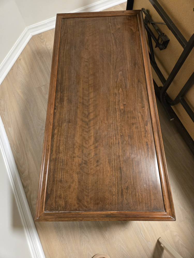 Rectangular coffee table. Dark brown wood finish. Elegant cabriole legs. Simple design. Great addition to any living room.moving sale