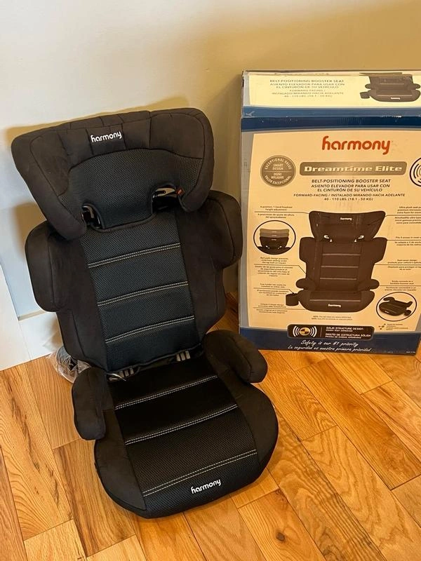 Brand New still in the box. Selling a Harmony Dreamtime Elite Belt-Positioning Booster Seat w/ cup holder. It is designed for forward-facing use for children weighing 40-110 lbs (18.1 - 50 kg) and 40-110 L.S. The box and recipt is included!