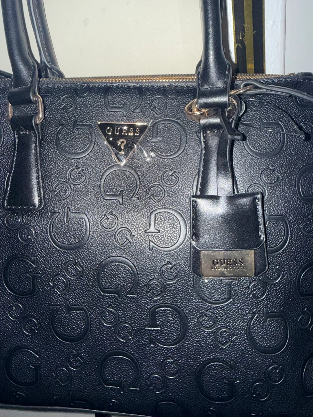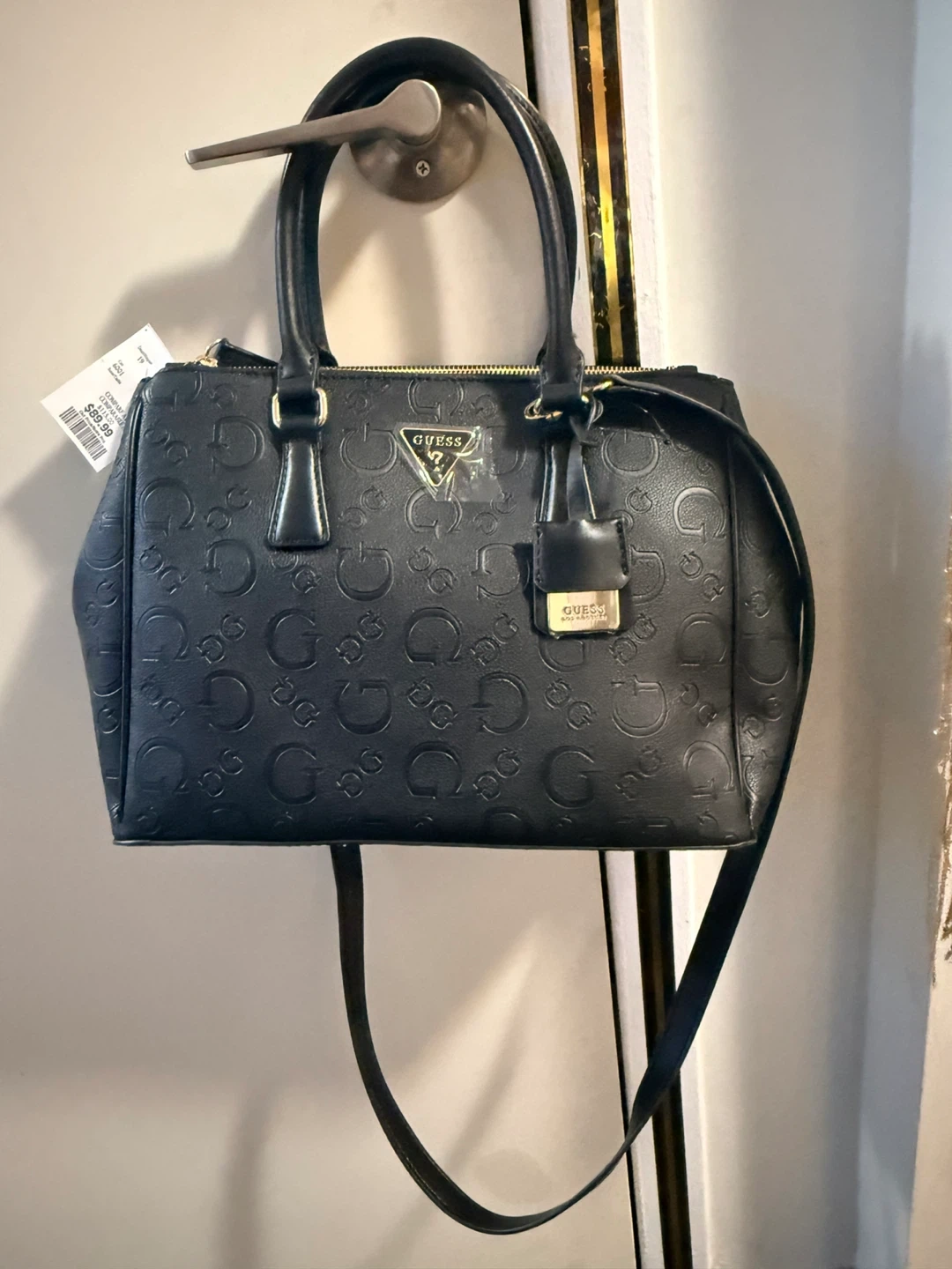 Black "G" embossed satchel handbag. Includes detachable shoulder strap. Original price $155.00.