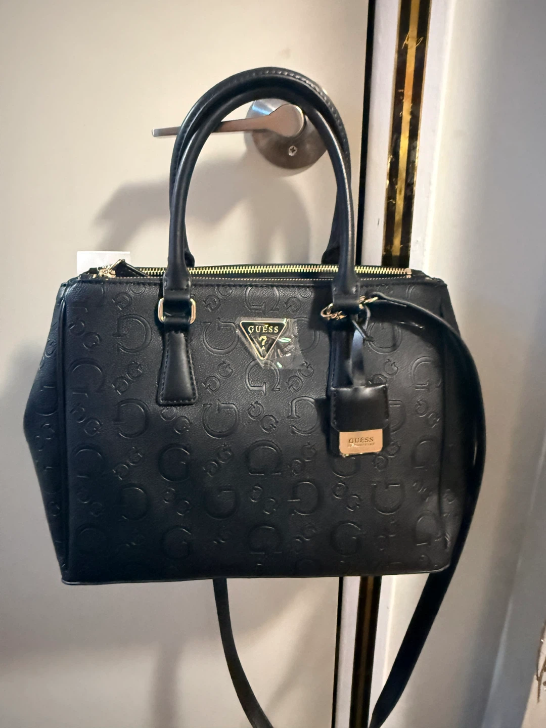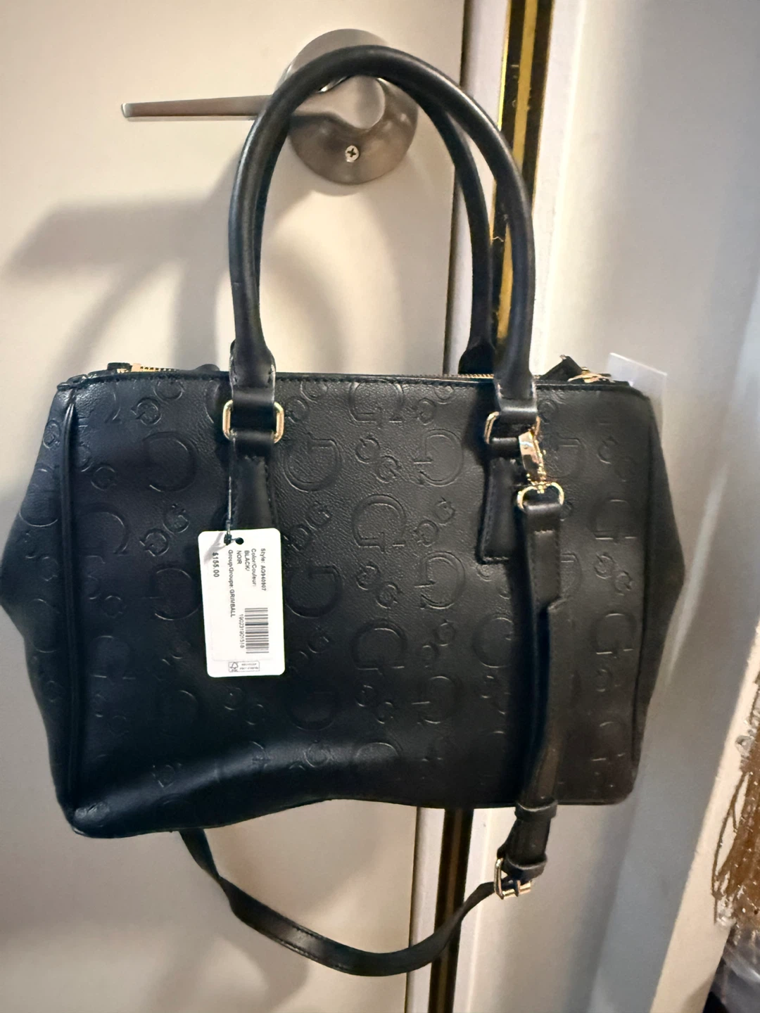 Black "G" embossed satchel handbag. Includes detachable shoulder strap. Original price $155.00.