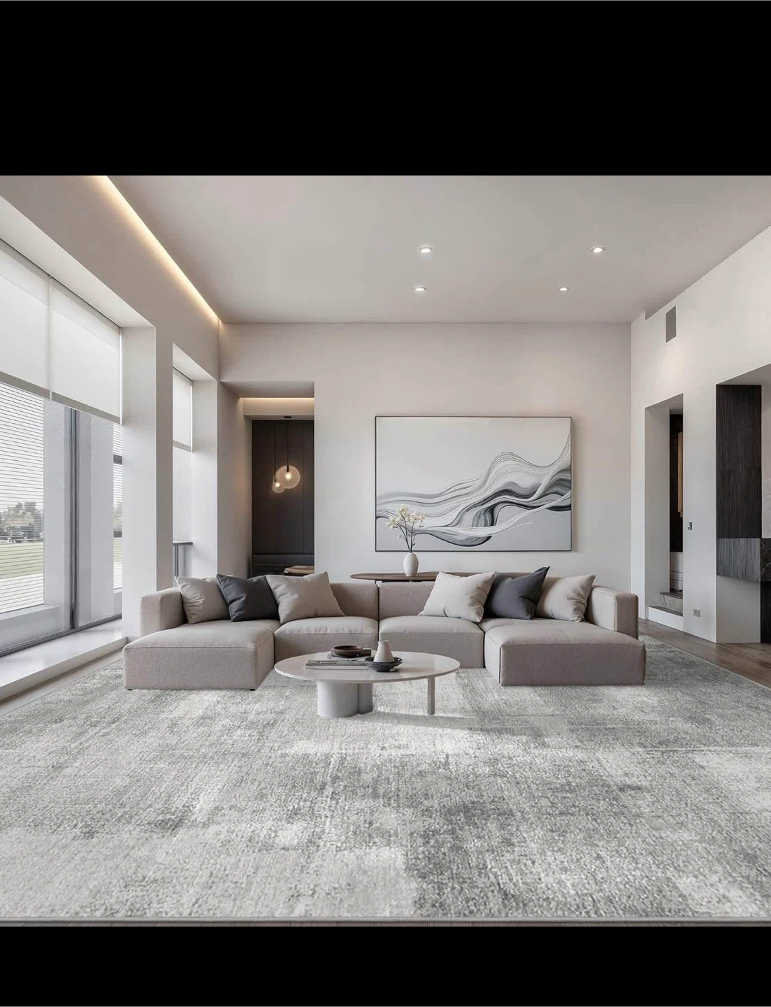 Abstract Design — Designed with grey as the main color tone, this collection of rugs features a simplicity and exquisite abstract print that brings a touch of unique elegance to your space. Crafted from soft microfiber material, this 9x12 area rug offers a comfortable, stain-resistant surface.