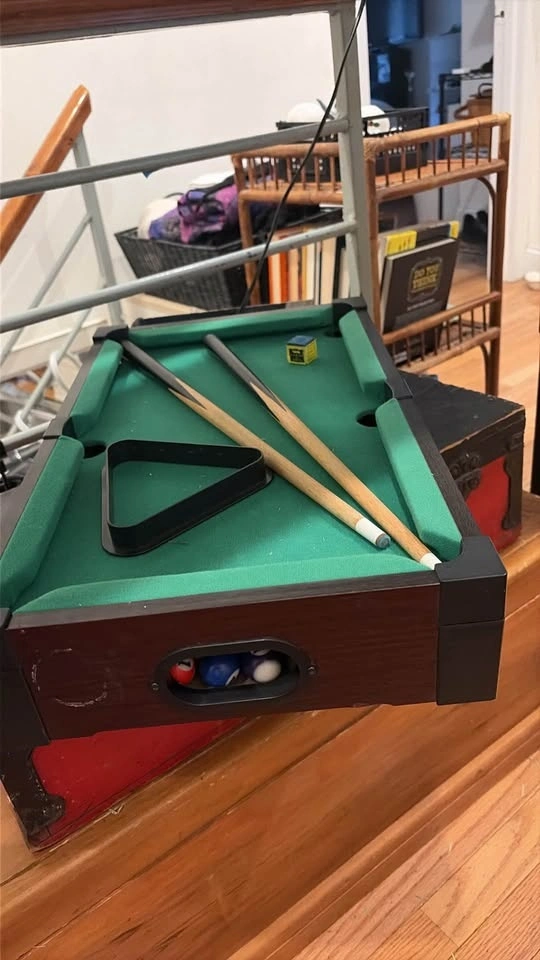 Buy & SellMini Pool TableMini Pool Table$40Selling a mini pool table as is. All pieces included (ball, sticks, and chalk). Pick up Hell's Kitchen!WHERE TO MEETCheck LocationView MapSELLERLyseHell's Kitchen221 review0 chats·3 favorites·31 viewsSEND CHAT TO SELLERHi Lyse! I’m interested in your listing.Hi Lyse! I’m interested in your listing.Get the Karrot app to chatSign In to chat