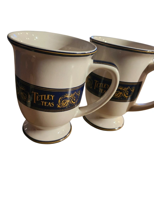 Selling a vintage Tetley Teas tea set. It includes two mugs, a sugar bowl with lid, a creamer, and a teapot. Perfect for any tea lover or collector!