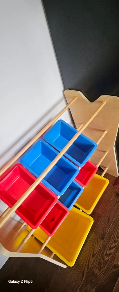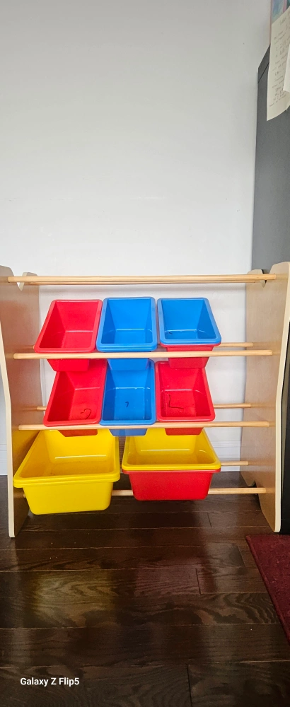 Declutter your kids' play area with this toy storage organizer! It comes with colourful bins to make sorting and storing toys easy and fun. Perfect for keeping things tidy and organized