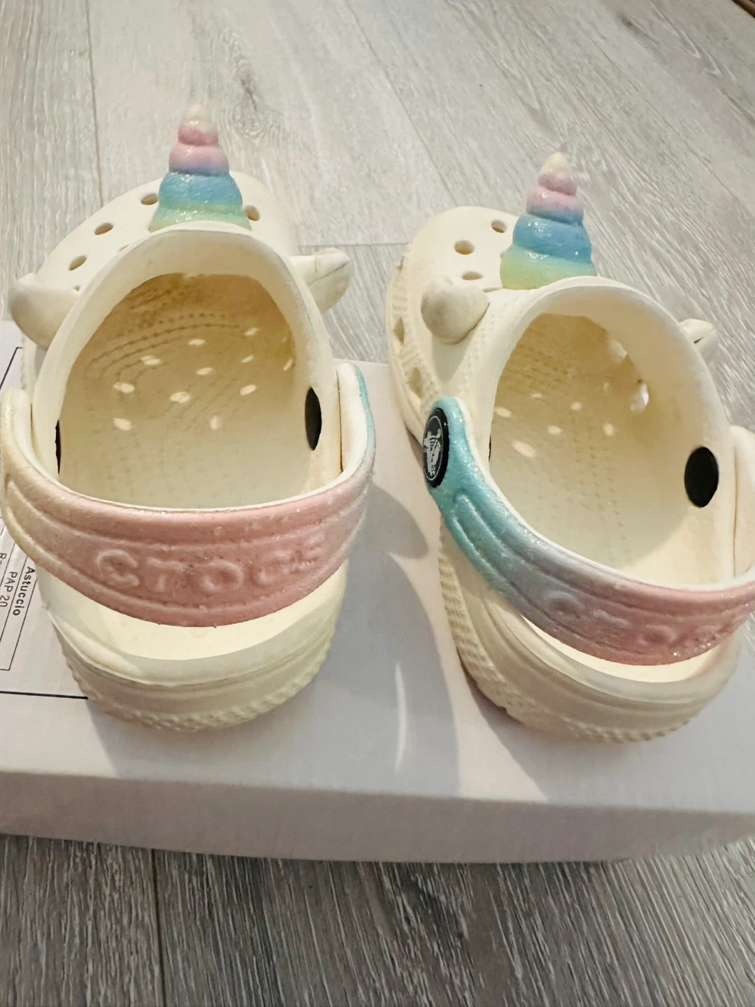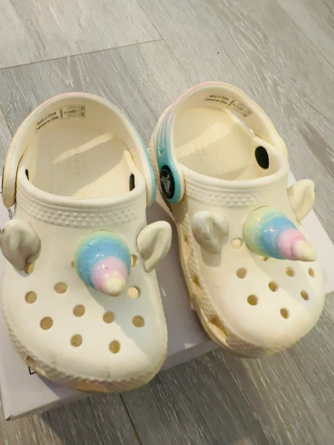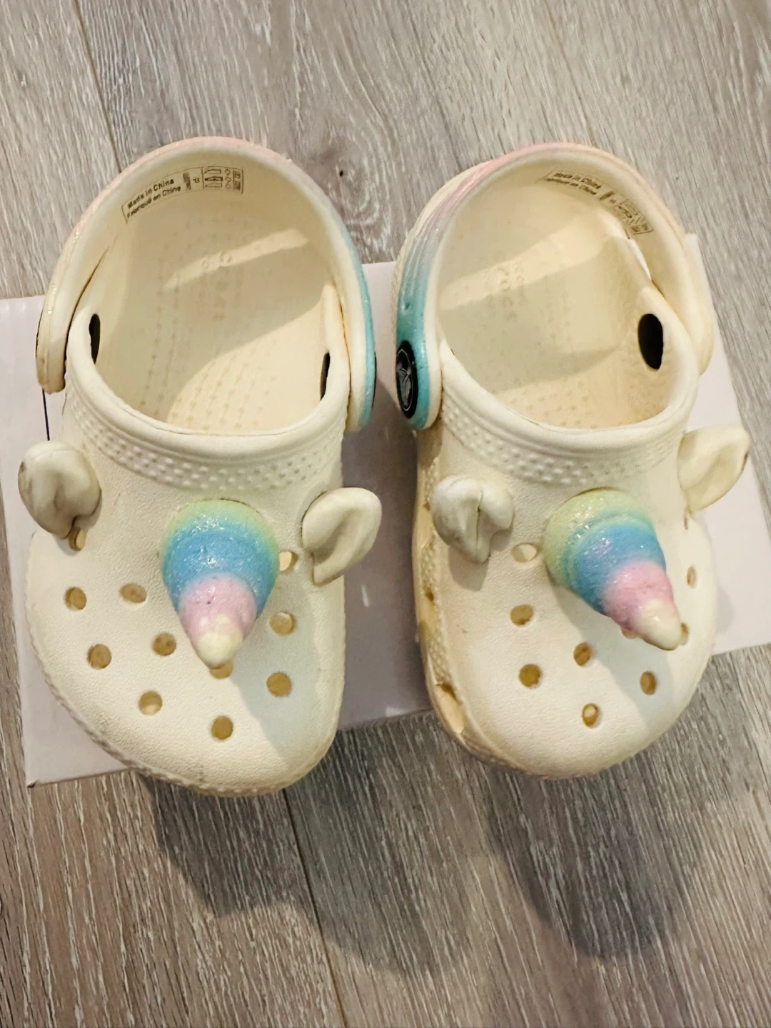 Buy & SellCrocs Toddler Unicorn Clog Shoes size C5Crocs Toddler Unicorn Clog Shoes size C5$7White Crocs clogs for toddlers with a cute unicorn design. They feature pastel rainbow unicorn horns and ears. Easy to slip on and off!ConditionOkayWHERE TO MEETCheck LocationView MapSELLERverifiedDanaGuildford720 reviews1 chats·0 favorites·6 viewsSEND CHAT TO SELLERHi Dana! I’m interested in your listing.Hi Dana! I’m interested in your listing.Get the Karrot app to chatSign In to chat