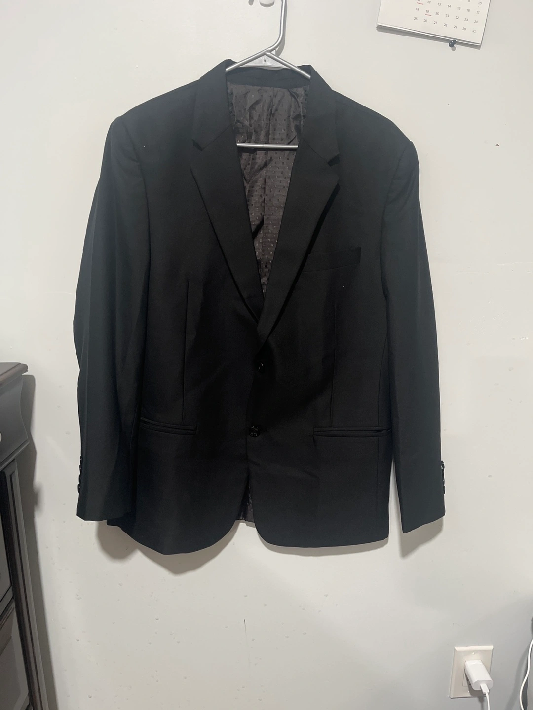 Classic black blazer. Two button closure. Long sleeves. Excellent for work or formal events. Good condition.