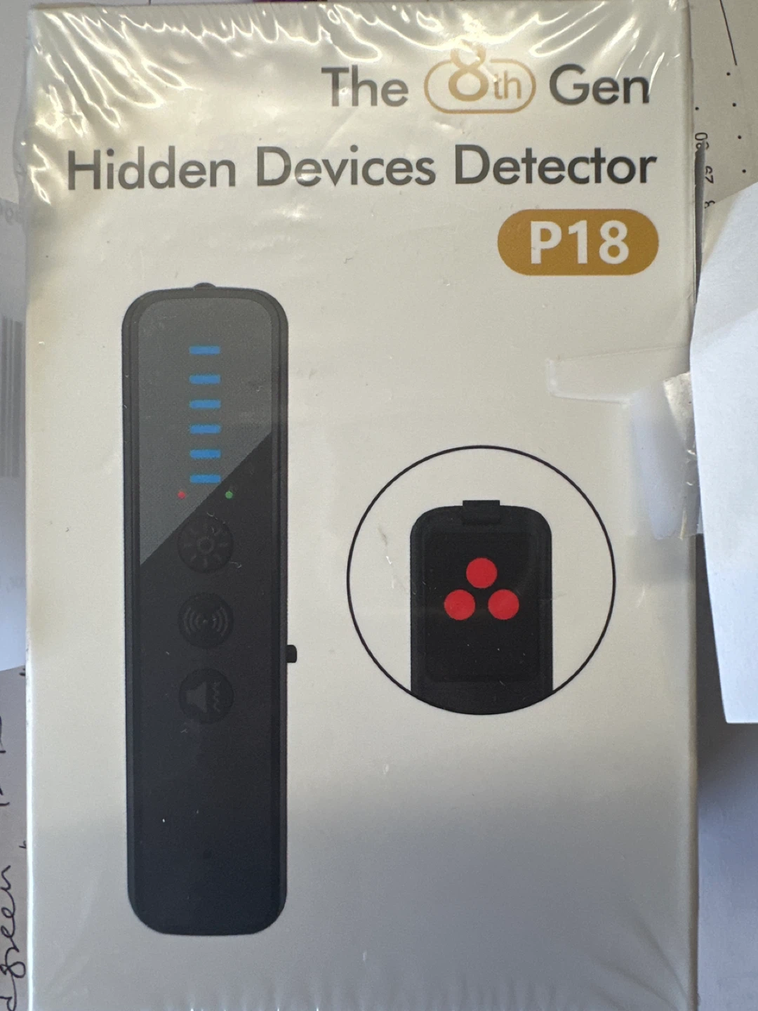 This is the 8th generation hidden devices detector, model P18. It's designed to detect hidden electronics and surveillance devices. Its compact design makes it easy to carry and use discreetly.