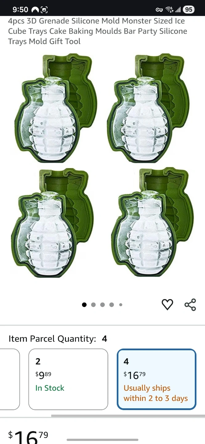 These are 4 grenade-shaped silicone molds for making ice cubes. They're made from silicone. These would be useful for parties or for making fun drinks!
