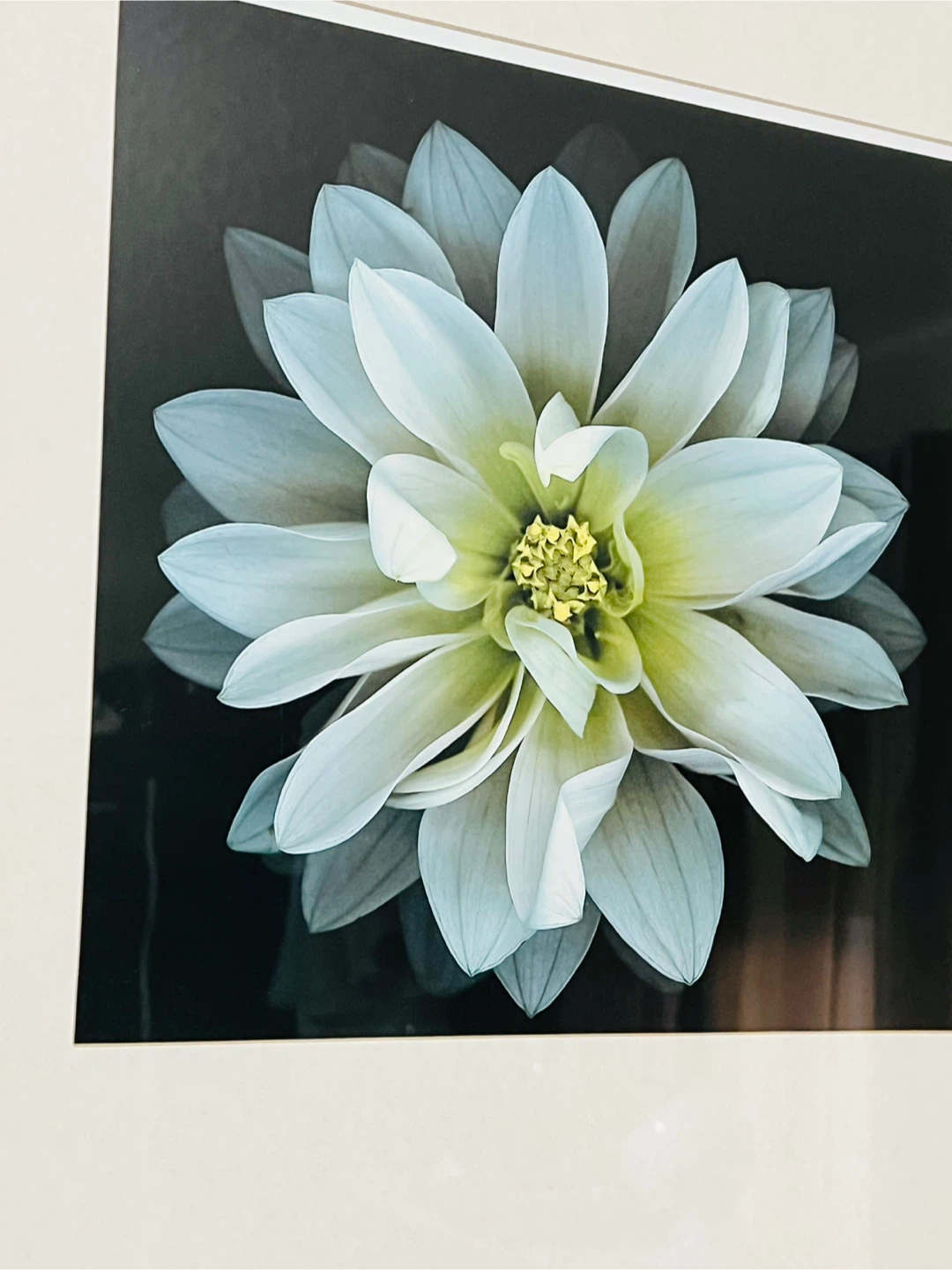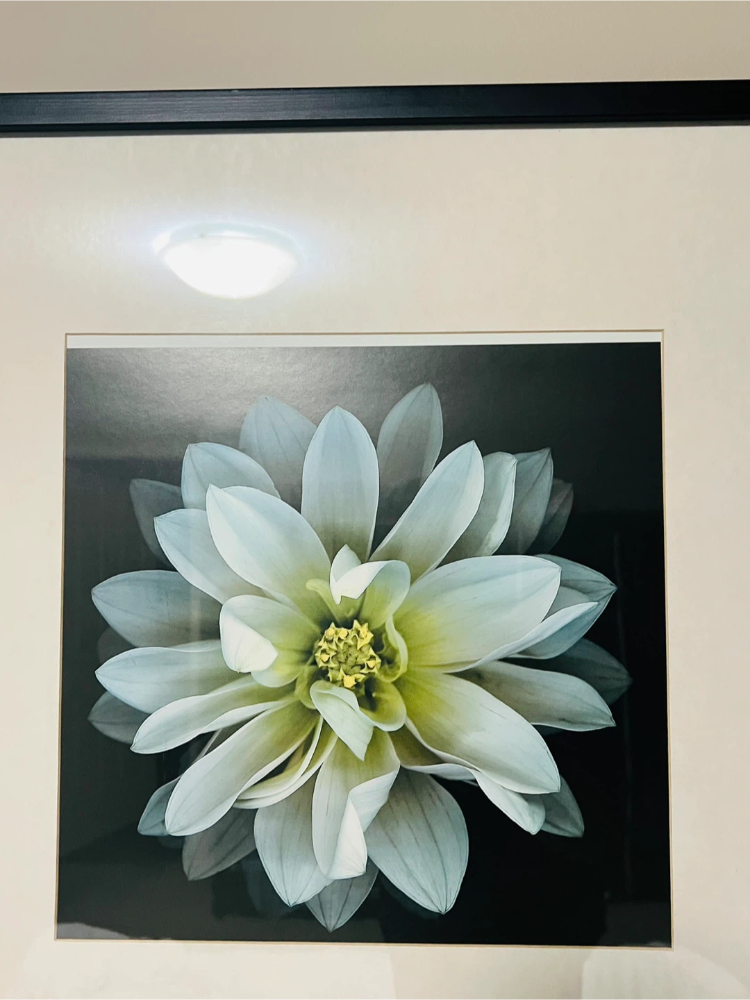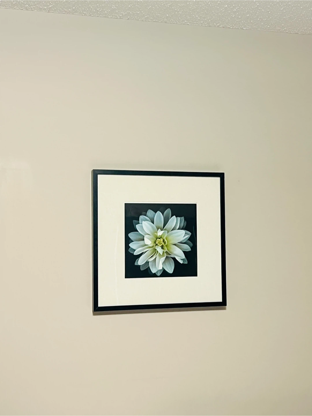 A lovely piece of wall art featuring a floral print with a black frame. It's in great condition and ready to add a touch of elegance to your home.