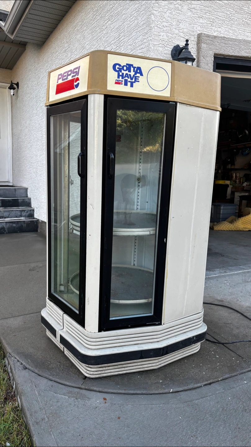Selling a vintage Pepsi display fridge with the "Gotta Have It!" logo. It's a unique piece for collectors or anyone looking to add a retro touch to their space. It features a glass door and interior shelving.