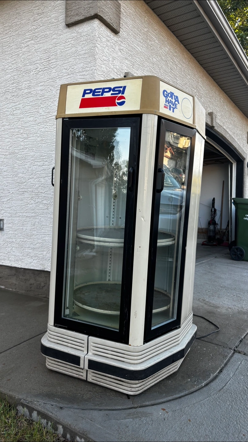 Selling a vintage Pepsi display fridge with the "Gotta Have It!" logo. It's a unique piece for collectors or anyone looking to add a retro touch to their space. It features a glass door and interior shelving.