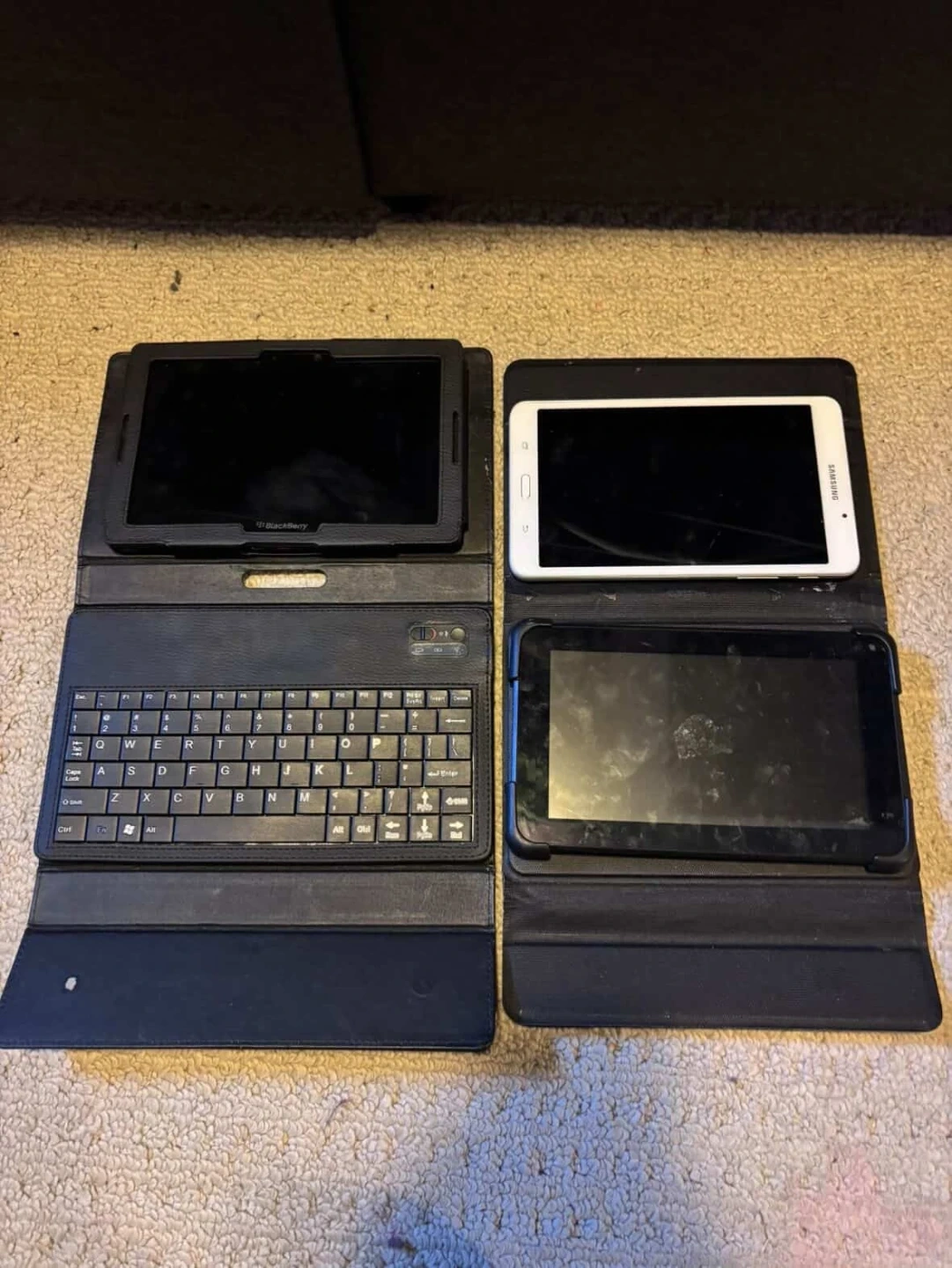 Buy & SellWhite Samsung Tablet and black, blackberryWhite Samsung Tablet and black, blackberry$30Theres a blackberry tablet with keyboard and case attached, a white and black tablet that also come in a foldable case as well ( 30$ for all )ConditionLike newBrandSamsungWHERE TO MEEThamptonsView MapSELLERverifiedbrieThe Hamptons580 reviews1 chats·0 favorites·19 viewsSEND CHAT TO SELLERHi brie! I’m interested in your listing.Hi brie! I’m interested in your listing.Get the Karrot app to chatSign In to chat