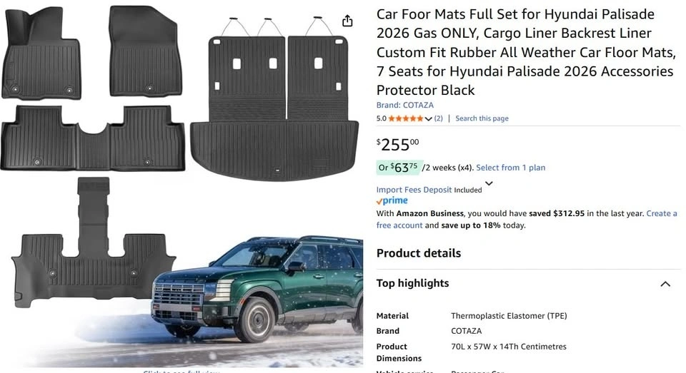 - Custom fit for Hyundai Palisade 2026 GAS model (not for hybrid)