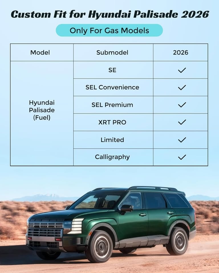 - Custom fit for Hyundai Palisade 2026 GAS model (not for hybrid)
