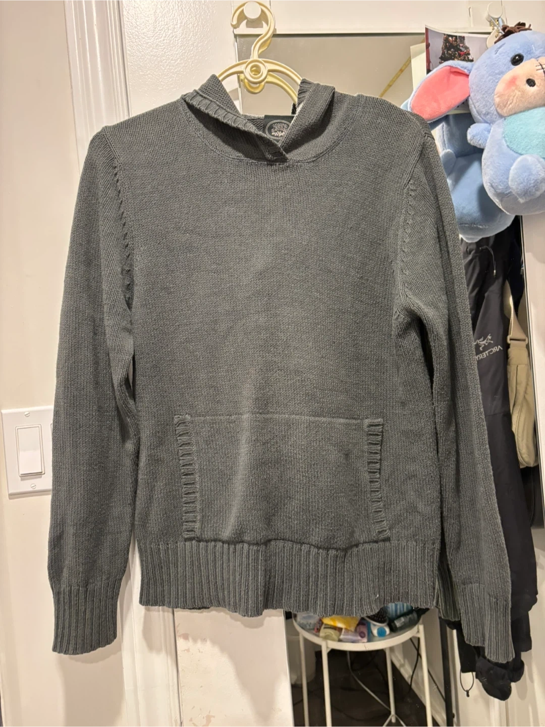 Selling a Laura Ashley knit hoodie in a neutral grey colour. It's a size large and in great condition. Perfect for layering!
