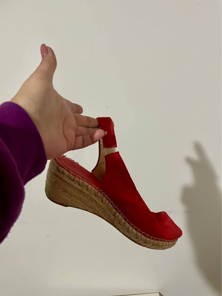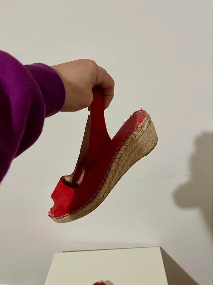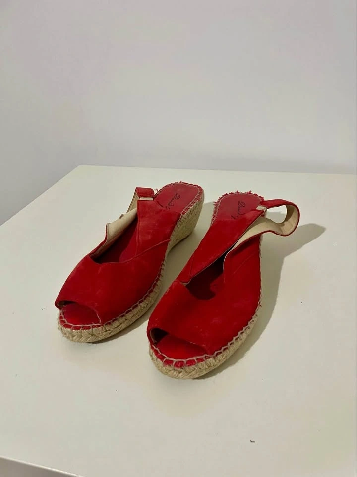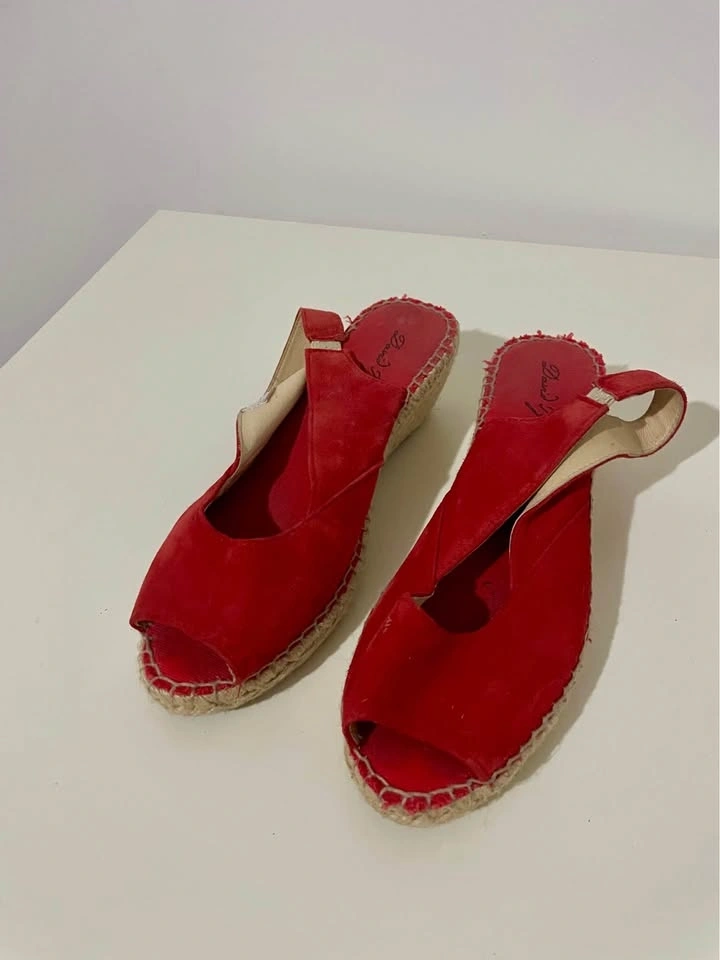 David Tyler Size 40 Women's Red Suede Espadrille Wedge Slingback
