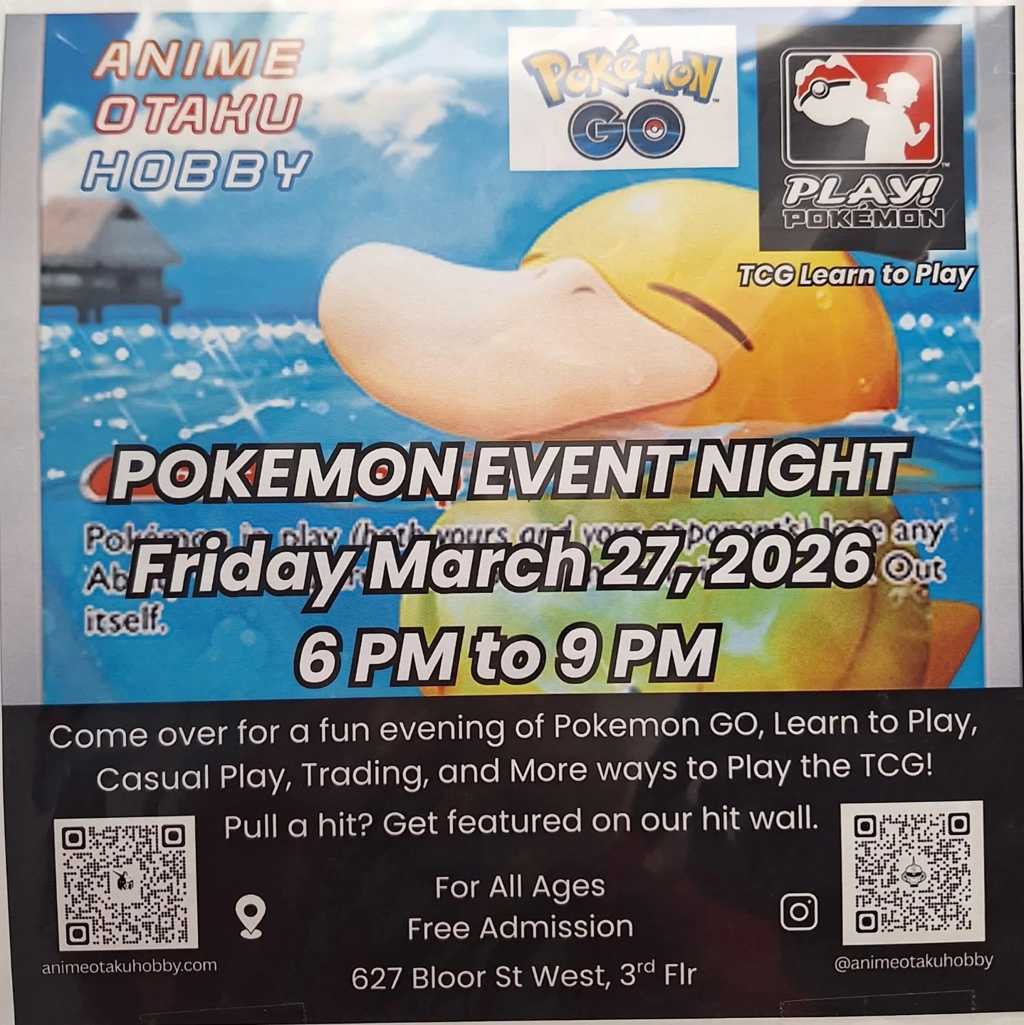 Featured Events include: Pokemon GO, Learn to Play, Casual Play, Trading, along with some other fun activities.