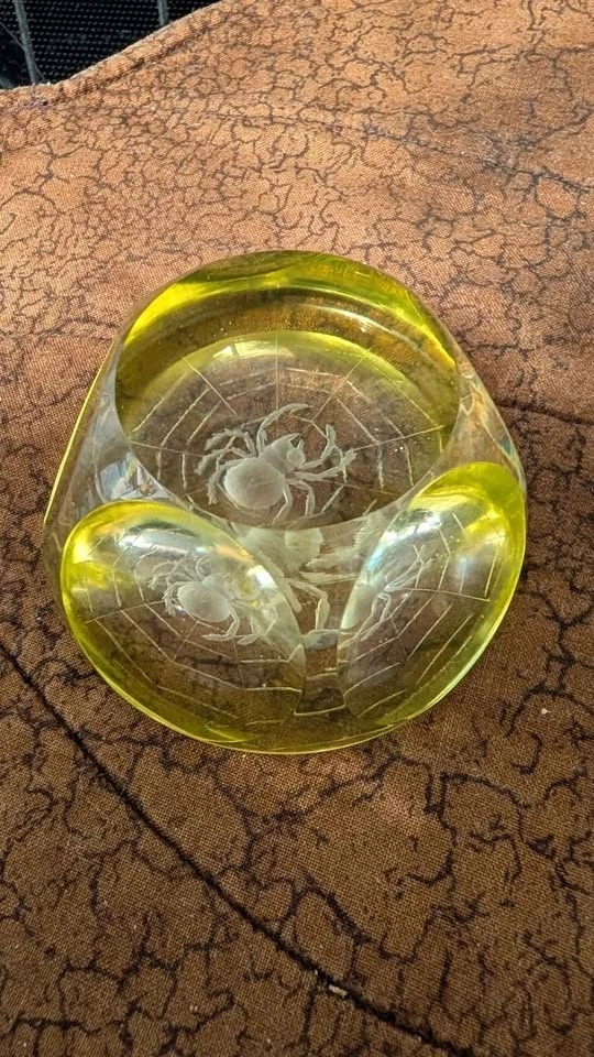 Vintage Webb Corbett Uranium Glass Spider Paperweight