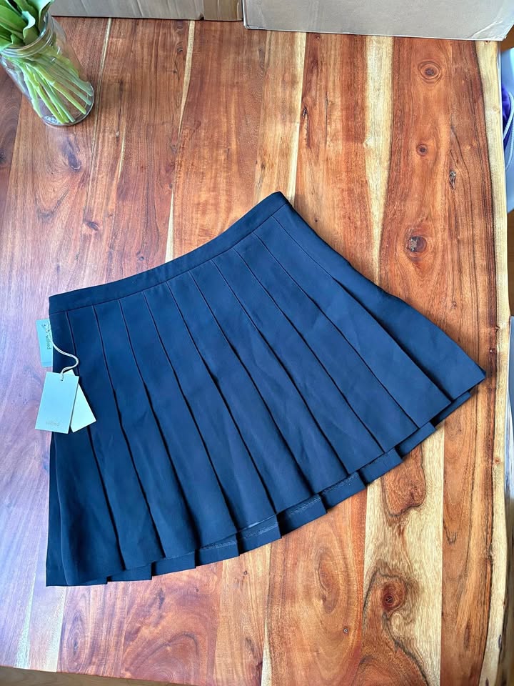 Brand new (with tags) pleated black miniskirt from Wilfred in size 10. It’s made with a Japanese fabric that drapes and swings beautifully on the body. Fully lined, with a size zipper and hook closure. It fits a little larger, and could also fit size 12. Discontinued online and in stores. Pickup near Yonge & Davisville.