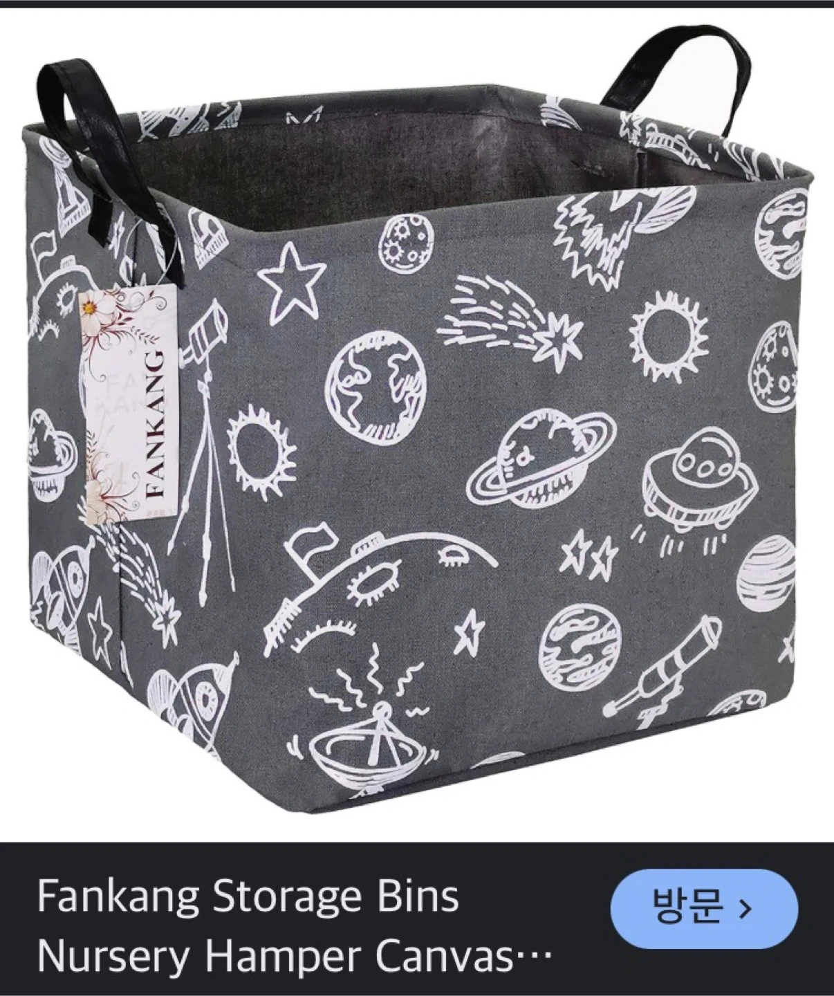 This FANKANG storage bin is perfect for a nursery or any room that needs a little organization! The canvas material is durable and features a cute space-themed pattern. It's great for storing toys, clothes, or other items. The handles make it easy to carry around