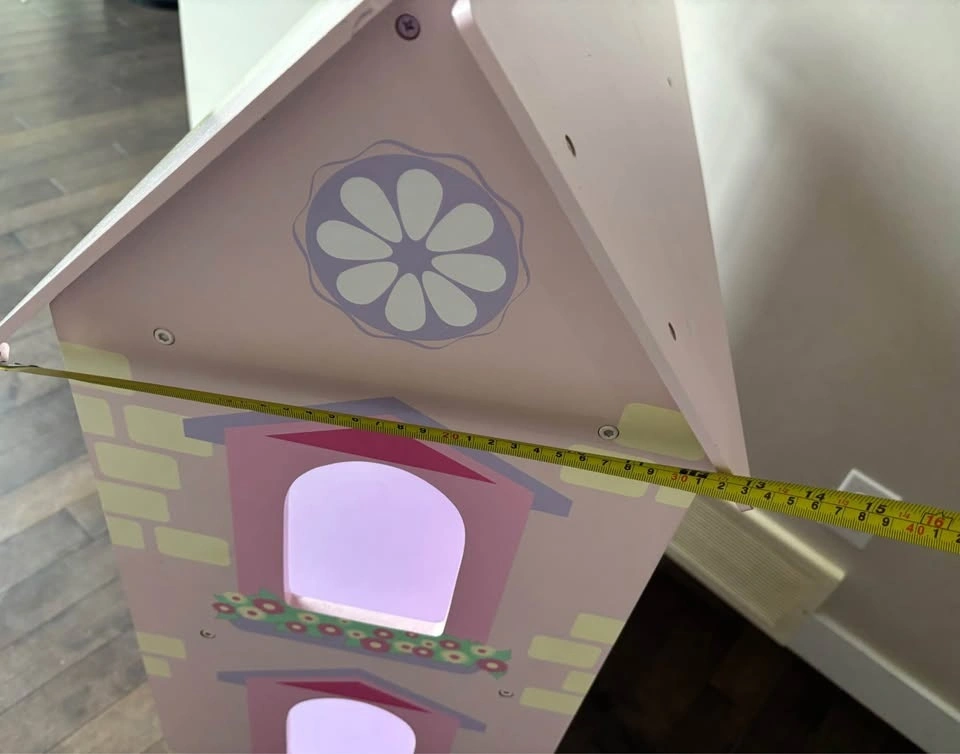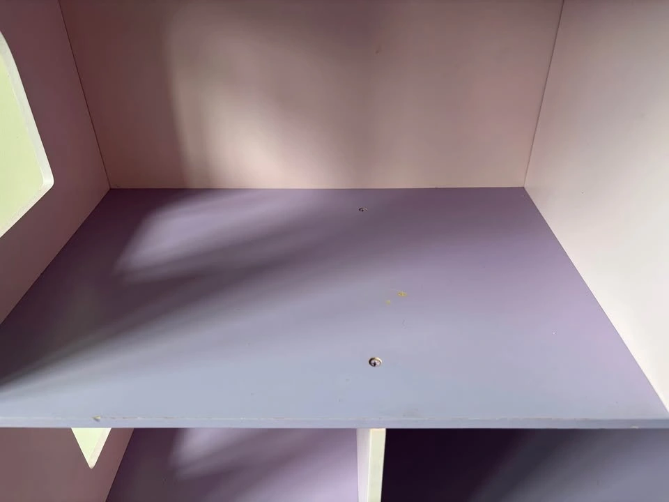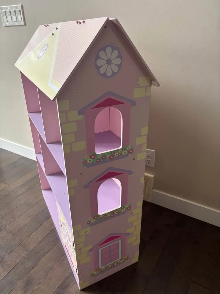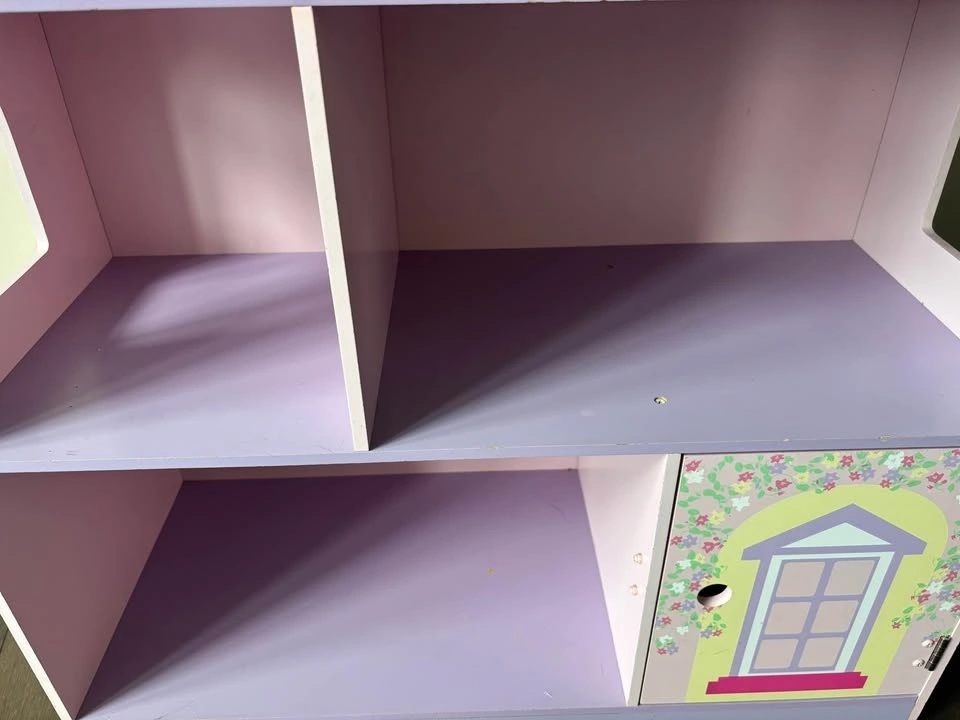 For pick up in Mahogany. There are a few marks & spots where the paint is chipped/damaged, but overall it’s in very good used condition. It’s approximately 40 inches tall x 30.25 inches wide x 13 inches deep (going by the roof).