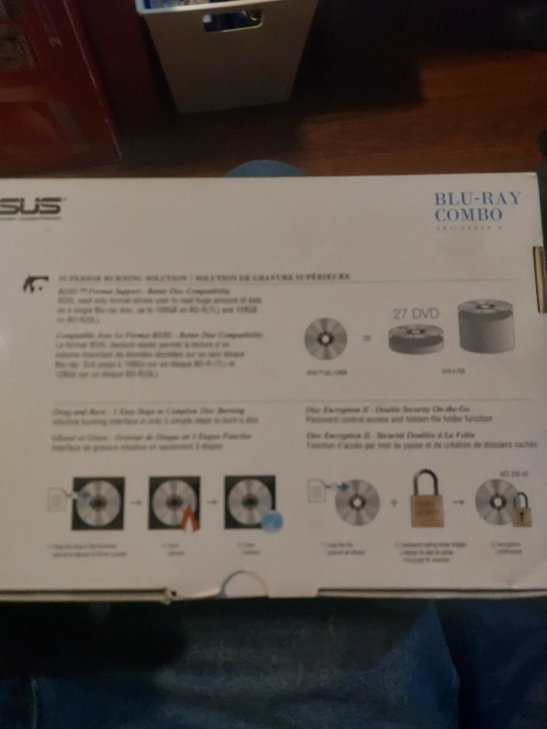 ASUS Blu-Ray Combo drive in its original box. It's a 6X speed drive. Includes instruction manual and stand. This has never been used just opened the box