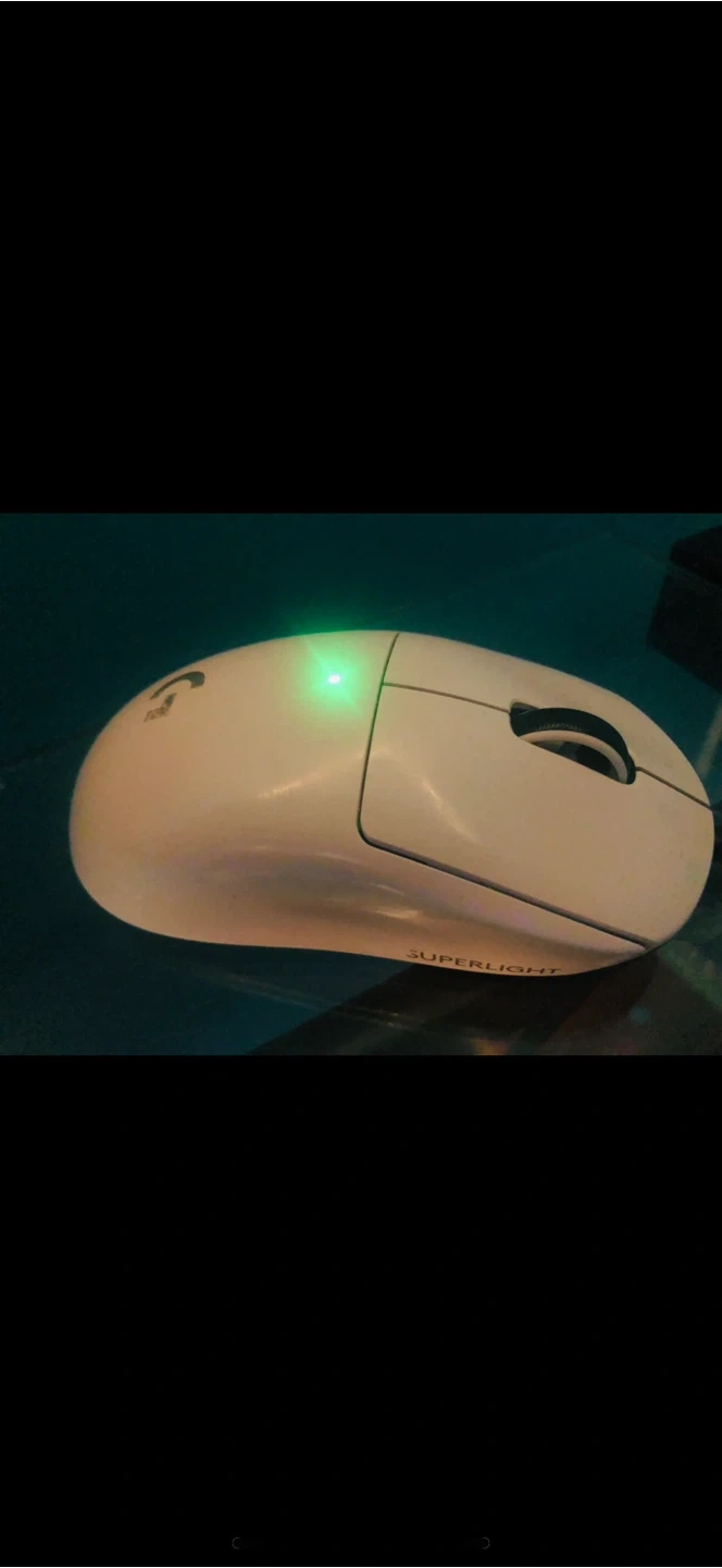 This is a white Logitech G Pro X Superlight wireless gaming mouse.